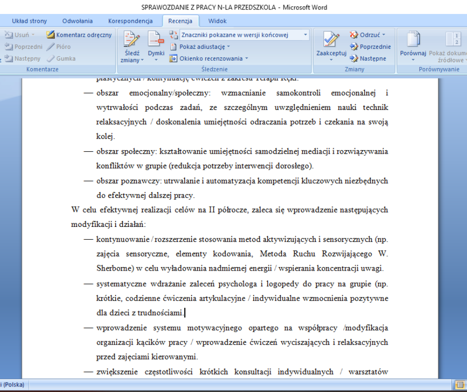 Sprawozdanie nauczyciela przedszkola z pracy dydaktyczno-wychowawczo-opiekuńczej za I półrocze
