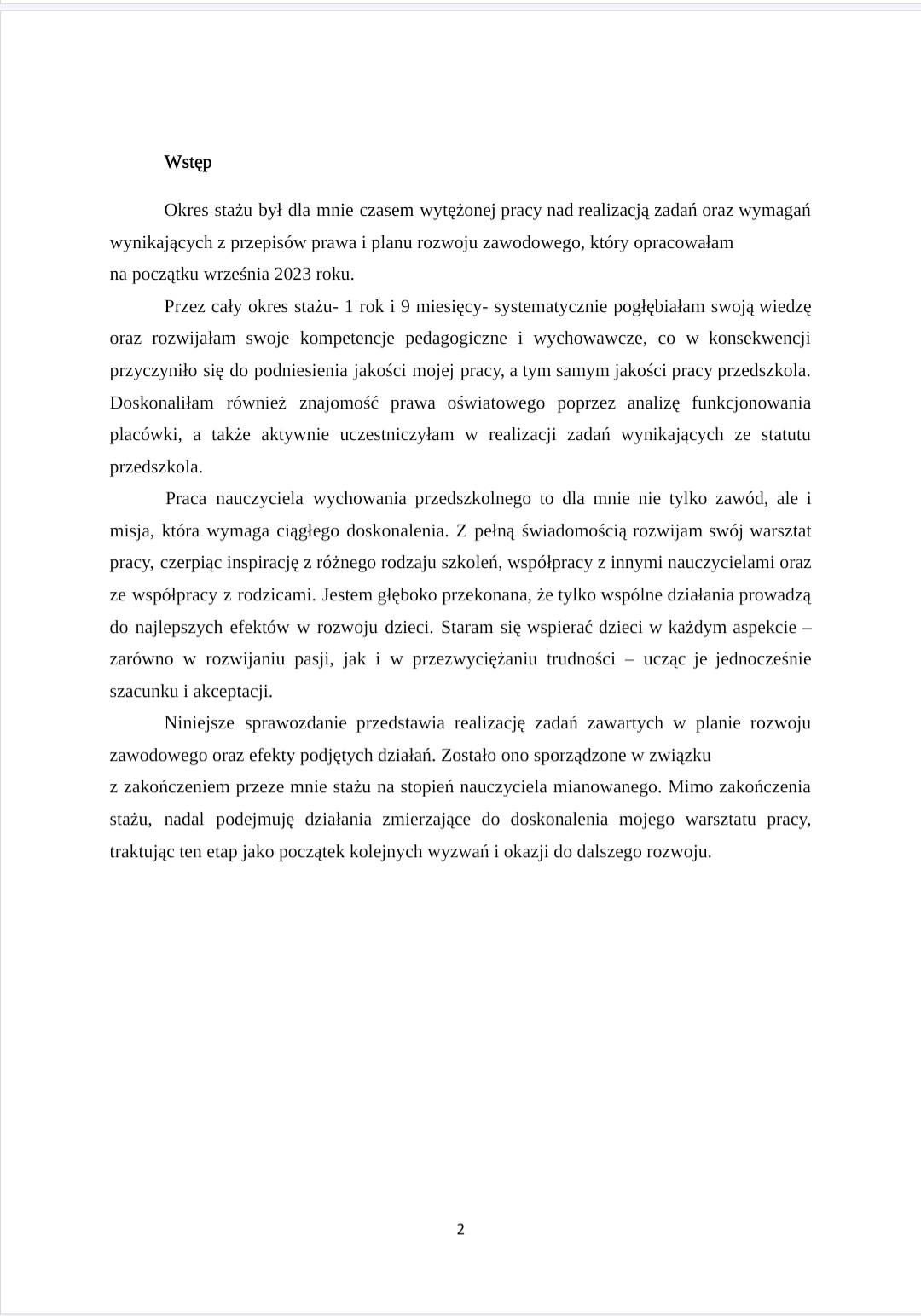 Sprawozdanie z realizacji planu rozwoju zawodowego nauczyciela kontraktowego ubiegającego się o stopień nauczyciela mianowanego
