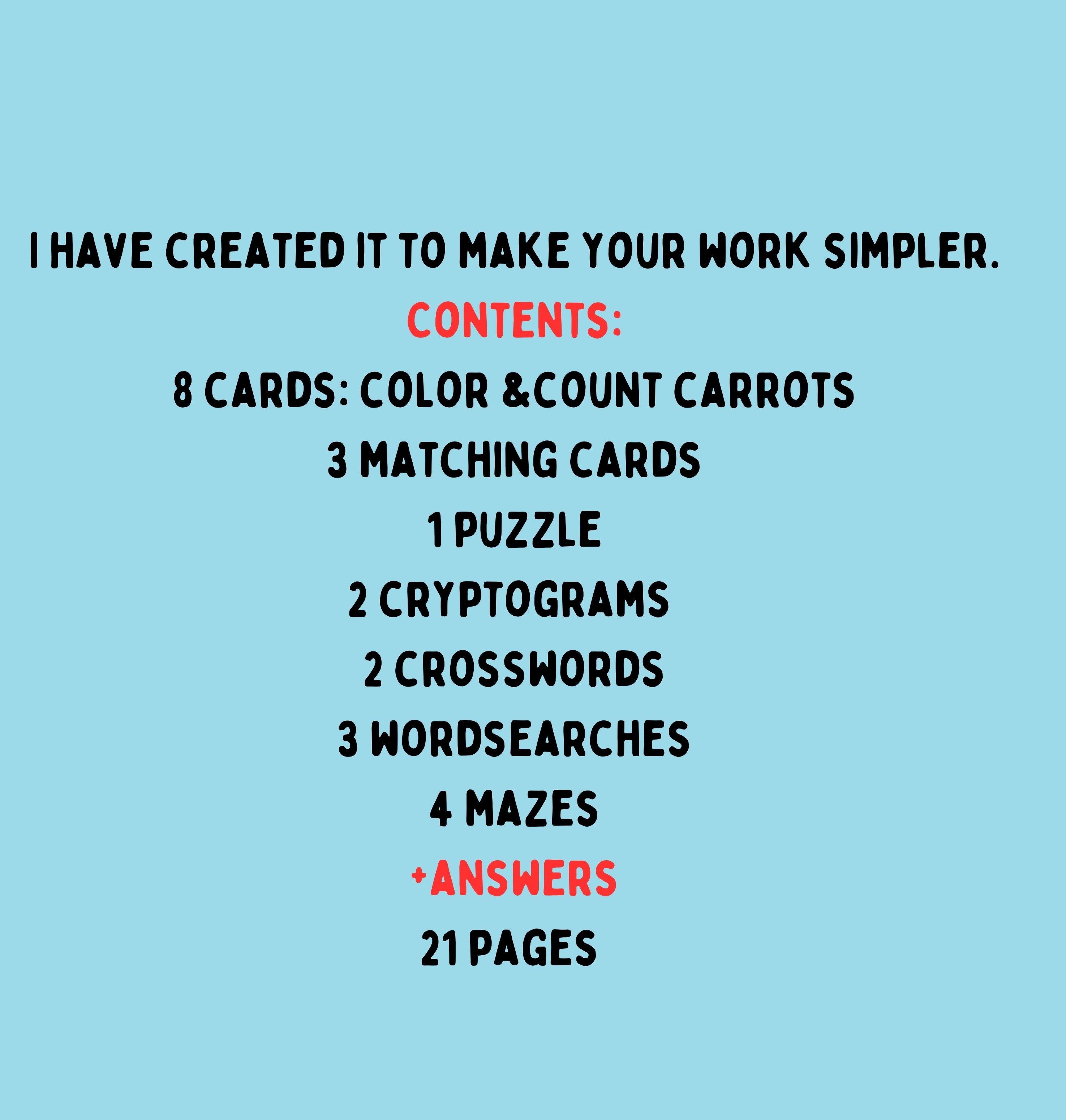Produkty, które tworzę są przydatne nie tyko podczas nauki j. angielskiego. Polecenia zapisuję w j. polskim oraz angielskim. Dotyczą ne wydarzeń sezonowych, bajek i piosenek z kanonu dziecięcego, emocji, zmysłów i wielu innych tematów. Ich format cyfrowy zapisany jest w PDF. Są to gry, szarady, łamigłówki, zadania na spostrzegawczość, kojarzenie ogólnie rzecz ujmując- zadania usprawniające logiczne myślenie, funkcje grafomotoryczne i motoryczne.