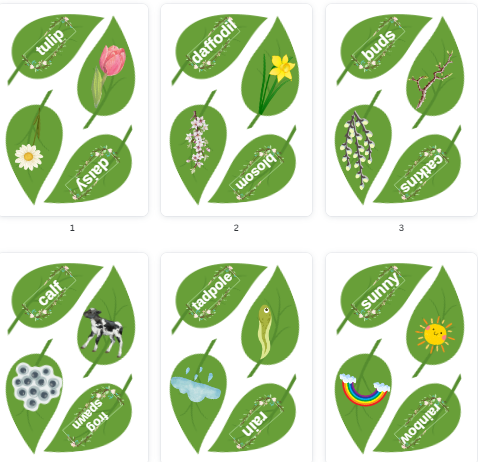 SPRING TREE: z tym zestawem wprowadzisz wiosenne słownictwo i udekorujesz salę. Obrazki i słowa umieszczone na listkach (można skleić je dwustronnie). Nazywając obrazki i czytając słowa dzieci dekorują wiosenne drzewo (plakat w dwóch wersjach kolorystycznych). Listki w formacie a4(dostępne tło na druga stronę kartki) wykorzystujemy jako grę memory. Drzewka w formacie a4 i listki w formacie a6 można wykorzystać jako kartę pracy lub wklejki do zeszytu. Dodatkowo napis na gazetkę SPRING w dwóch wersjach kolorystycznych.