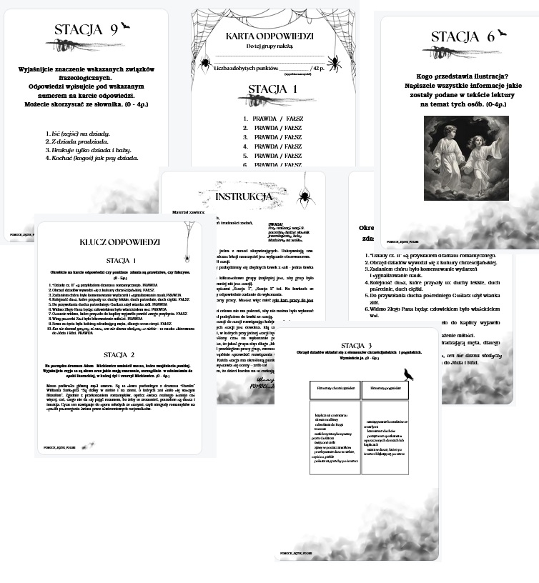 Inne materiały do „Dziadów” w moim sklepie – kartkówka ze znajomości lektury, krzyżówka i już niedługo literacka praca klasowa.