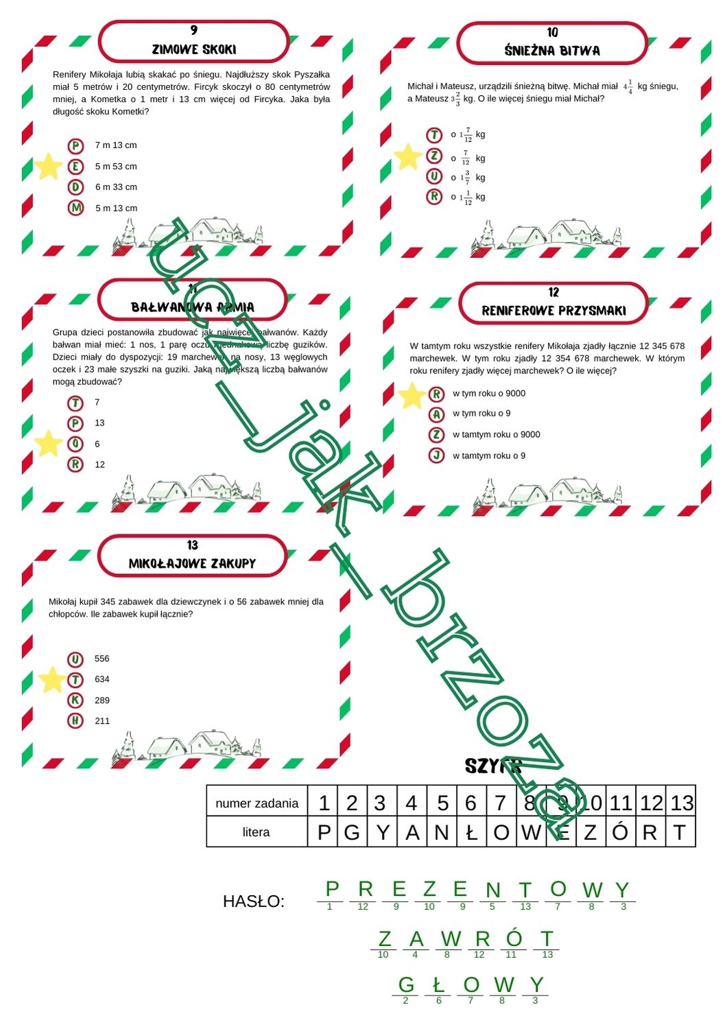 "Zimowy szyfr", to 13 stacji z zadaniami. Tym razem poprawne odpowiedzi nie kierują do kolejnych stacji, ale pomogą złamać szyfr potrzebny do odgadnięcia hasła. Świąteczna tematyka zadań wprowadza w miły nastrój.