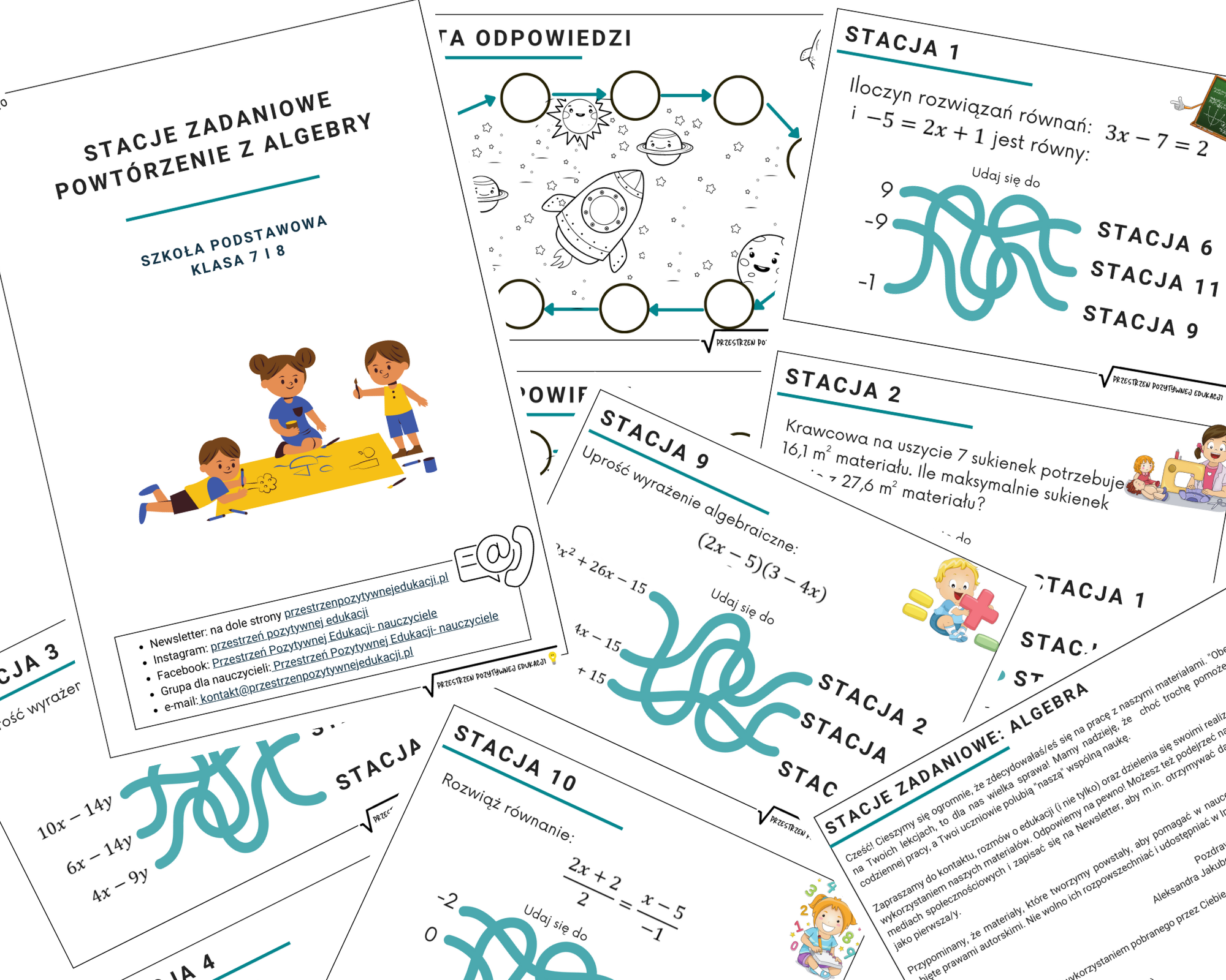 Stacje zadaniowe z algebry (równania, proporcje, wyrażenia, klasa 7 i 8)