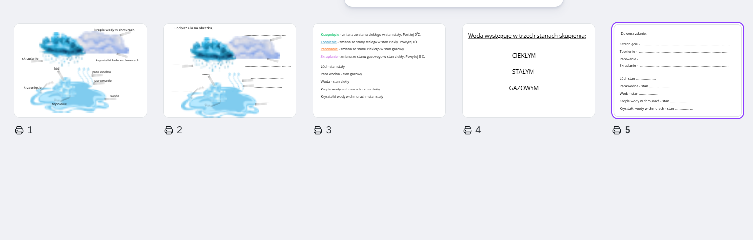 Stan skupienia - ciekły, stały i gazowy Obrazek z podpisami, obrazek do uzupełnienia Dokończ zdania