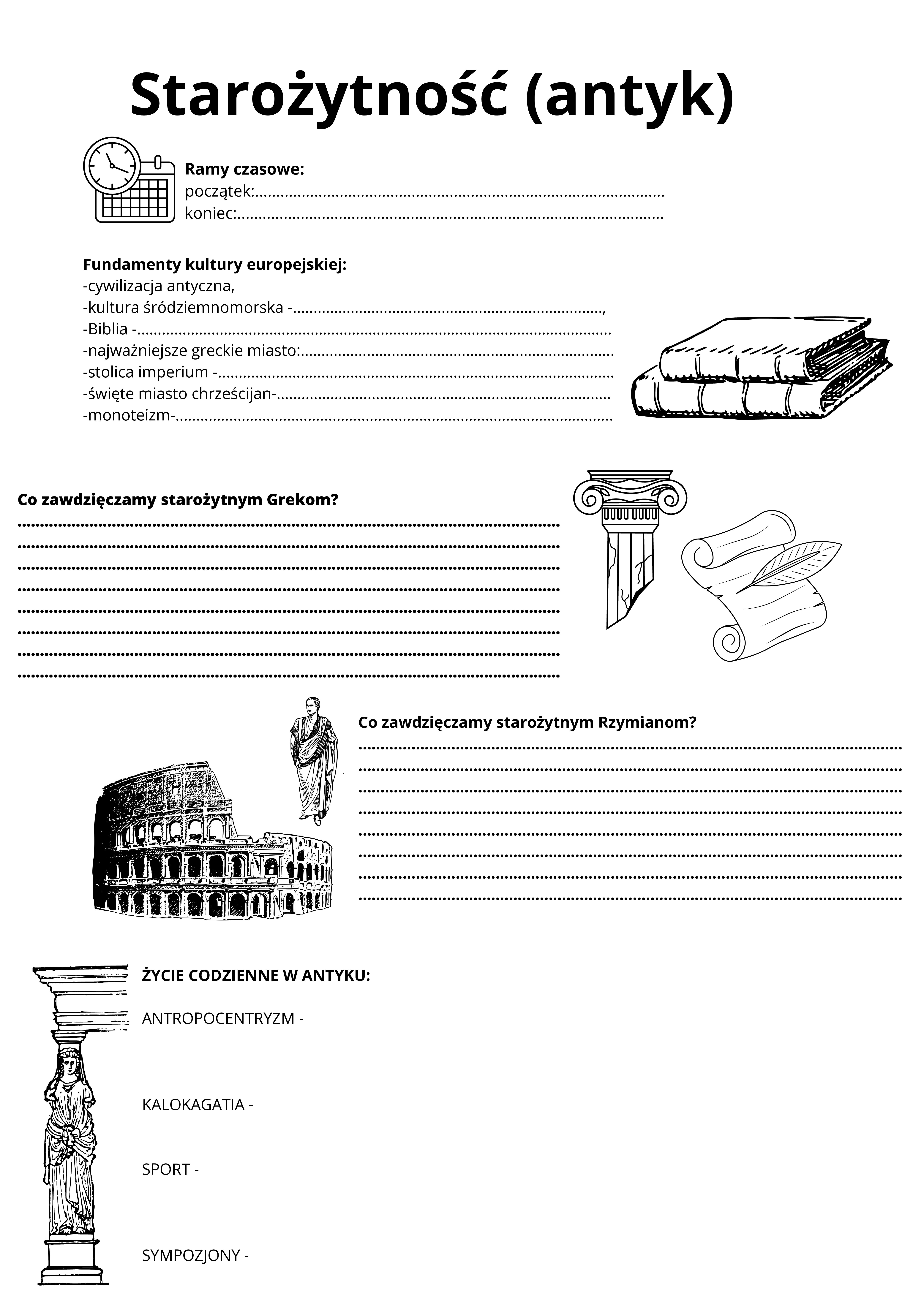 - ilustracje rozdaję uczniom i proszę, aby się zastanowili, jaki mogą mieć związek z czasami starożytnymi;