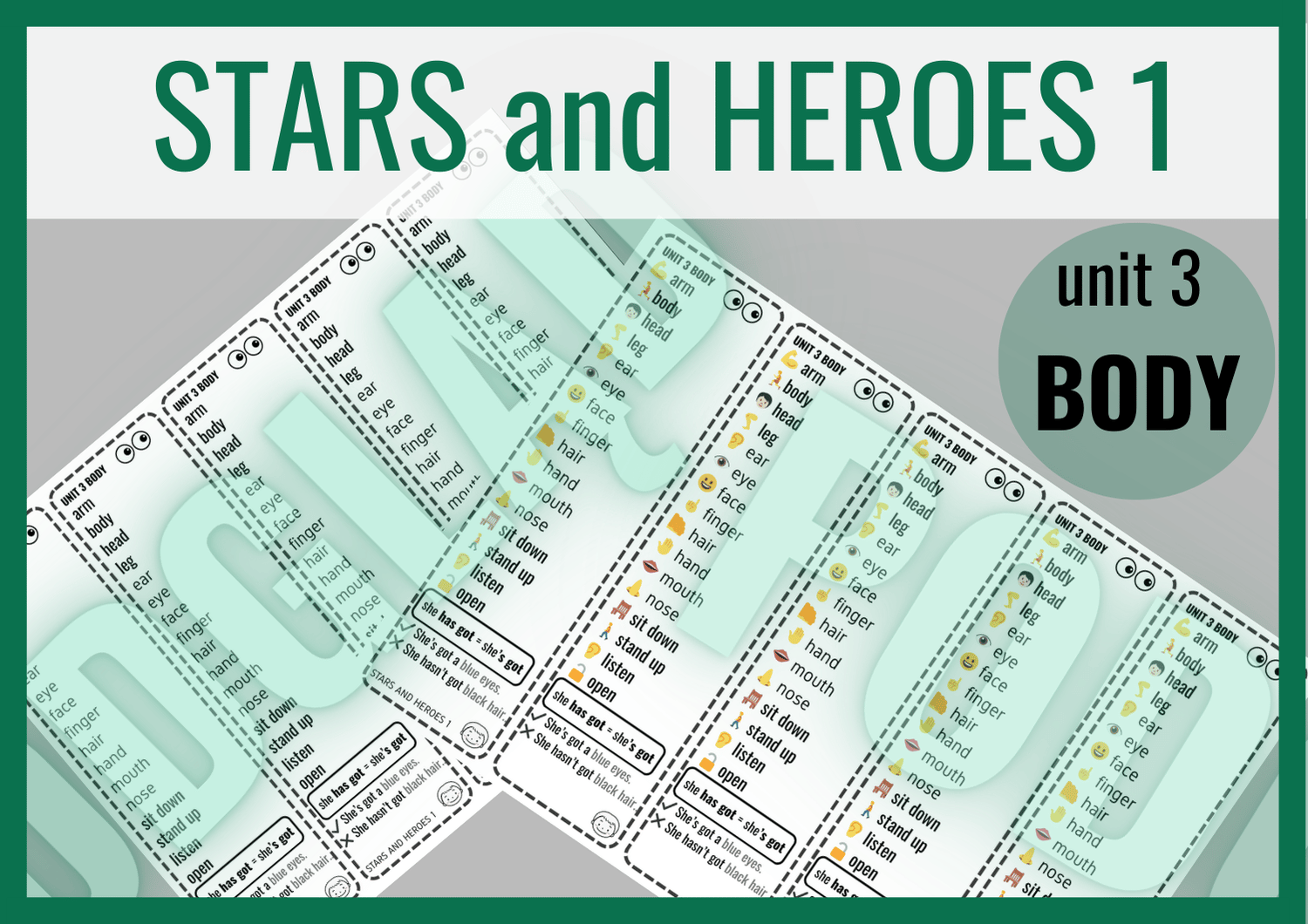 Gotowe zakładki do unitu 3 BODY do podręcznika Stars and Heroes 1 wydawnictwa PEARSON praktyczne, przydatne i estetyczne, porządkują słownictwo i ułatwiają uczniom szybkie powtórki 📚✨