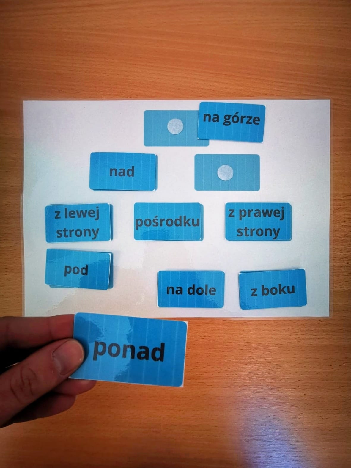 Wyrazy mam podklejone na rzep, a zadaniem ucznia jest przyczepić wyraz w odpowiednie miejsce (dla uczniów słabszych, z orzeczeniem).