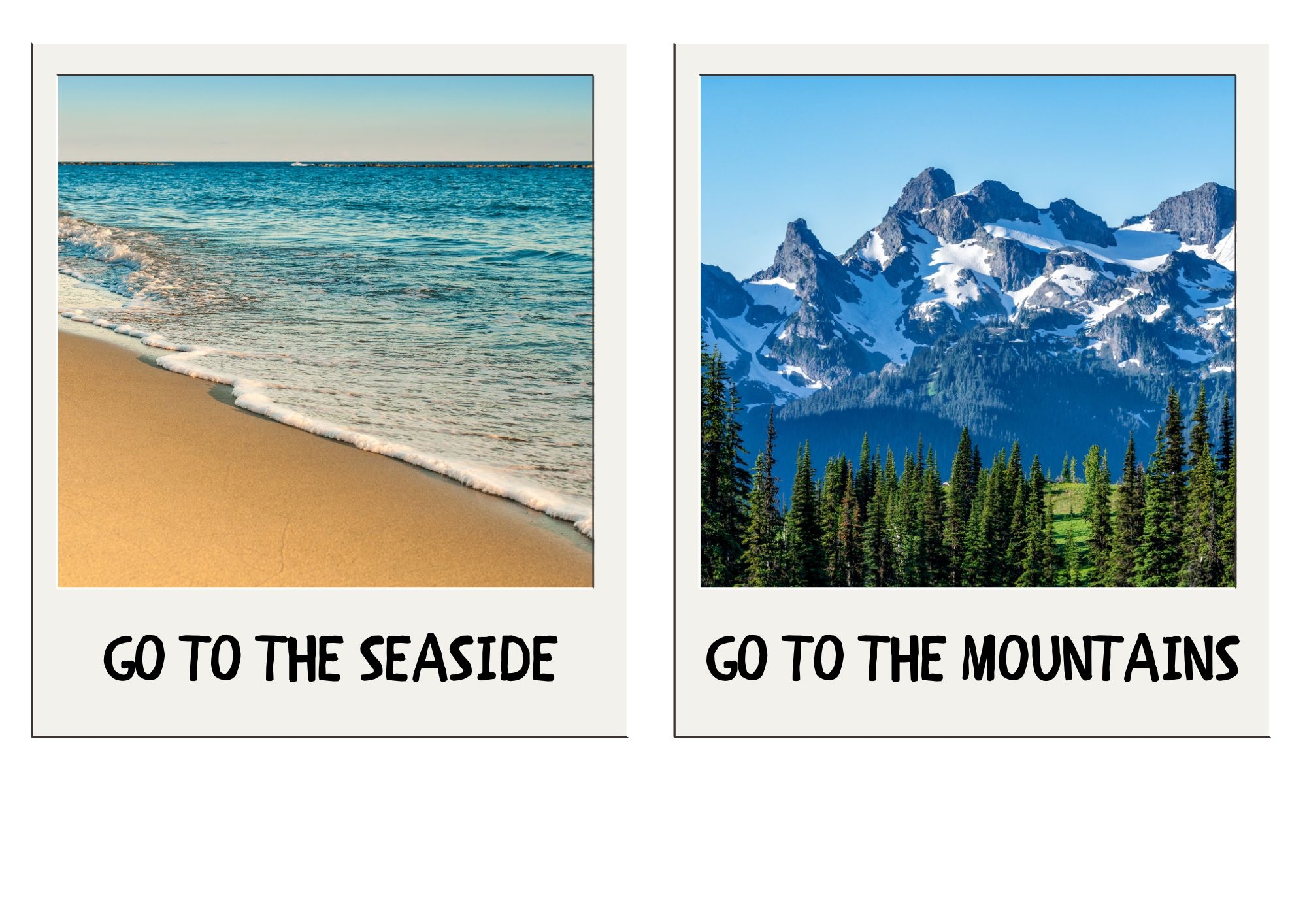 Materiał zawiera napis SUMMER w formie banneru, napisy What are you going to do this summer, zdjęcia aktywności z podpisami oraz kilka grafik. Idealne do powieszenia na gazetce ściennej.