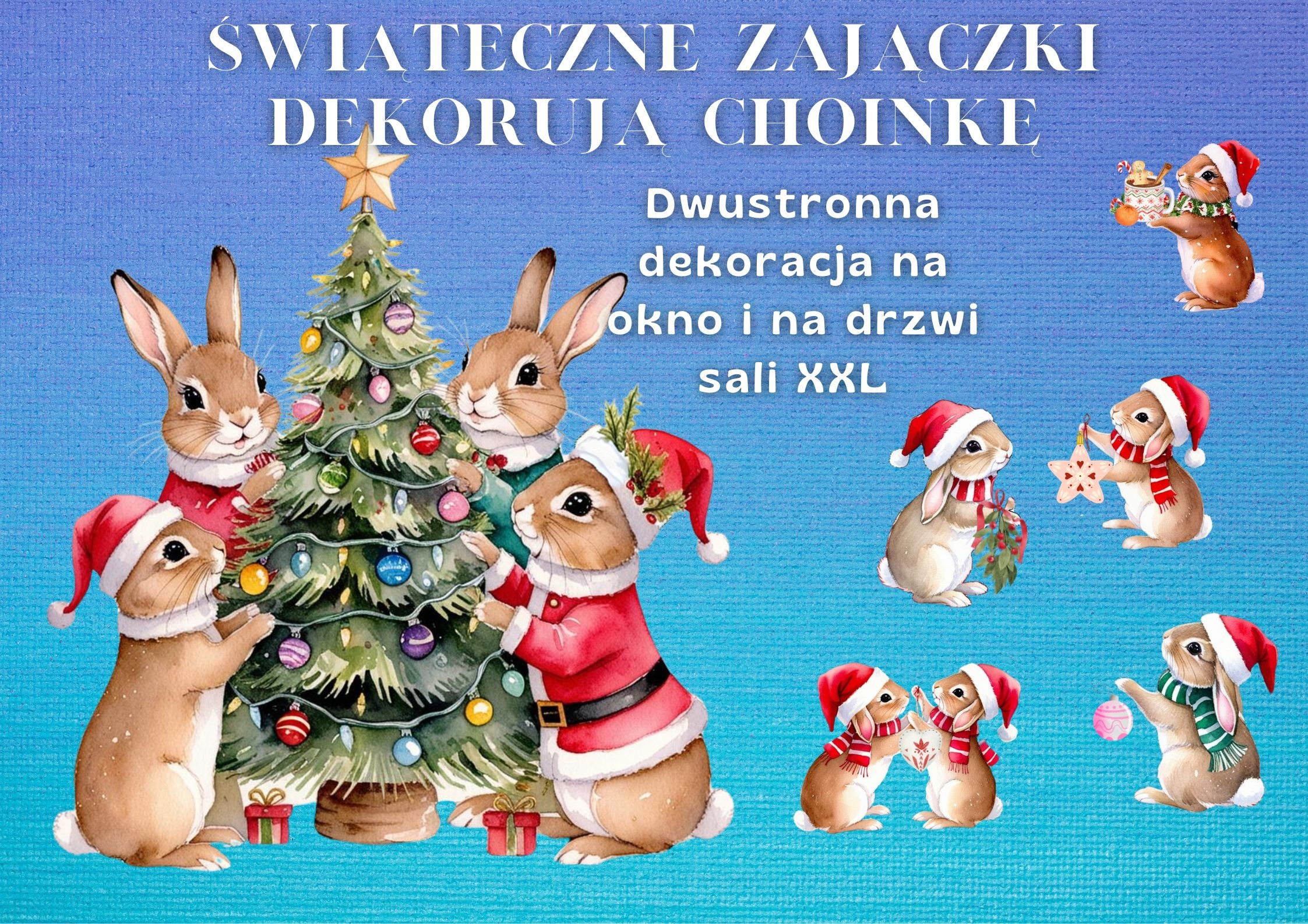- wiele kształtów przygotowanych do druku dwustronnego jako dekoracja na okno (zajączki, choinka, prezenty i ozdoby choinkowe, żeby odtworzyć scenę ubierania choinki przez zwierzątka).