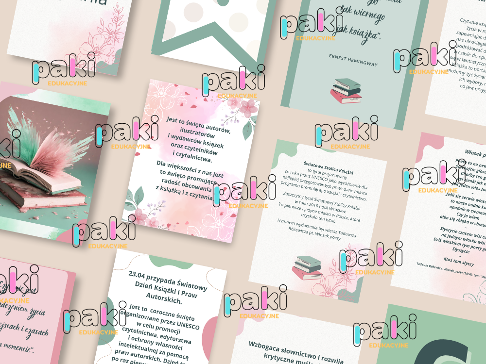 • informacje o Światowym Dniu Książki i Praw Autorskich (4 strony),
