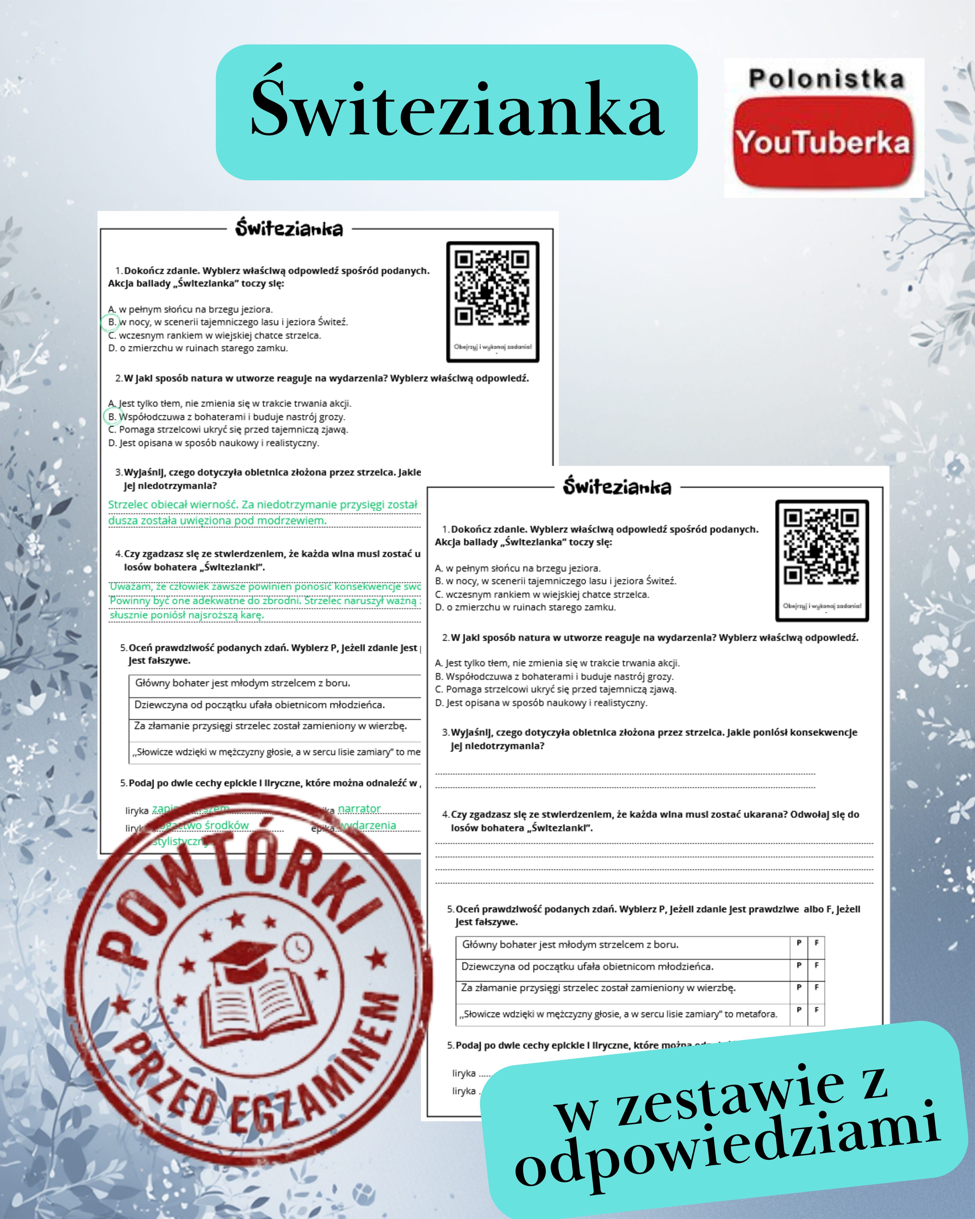 Karta zawiera kilka pytań, które pozwolą uczniom przypomnieć sobie treść i przesłenie "Świtezianki".
