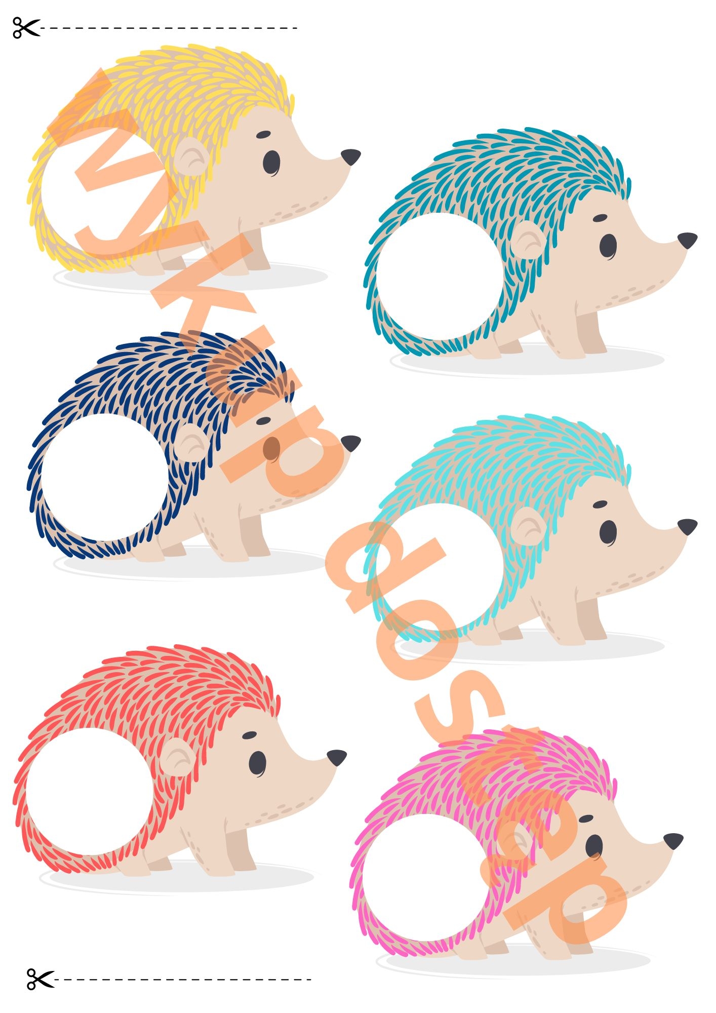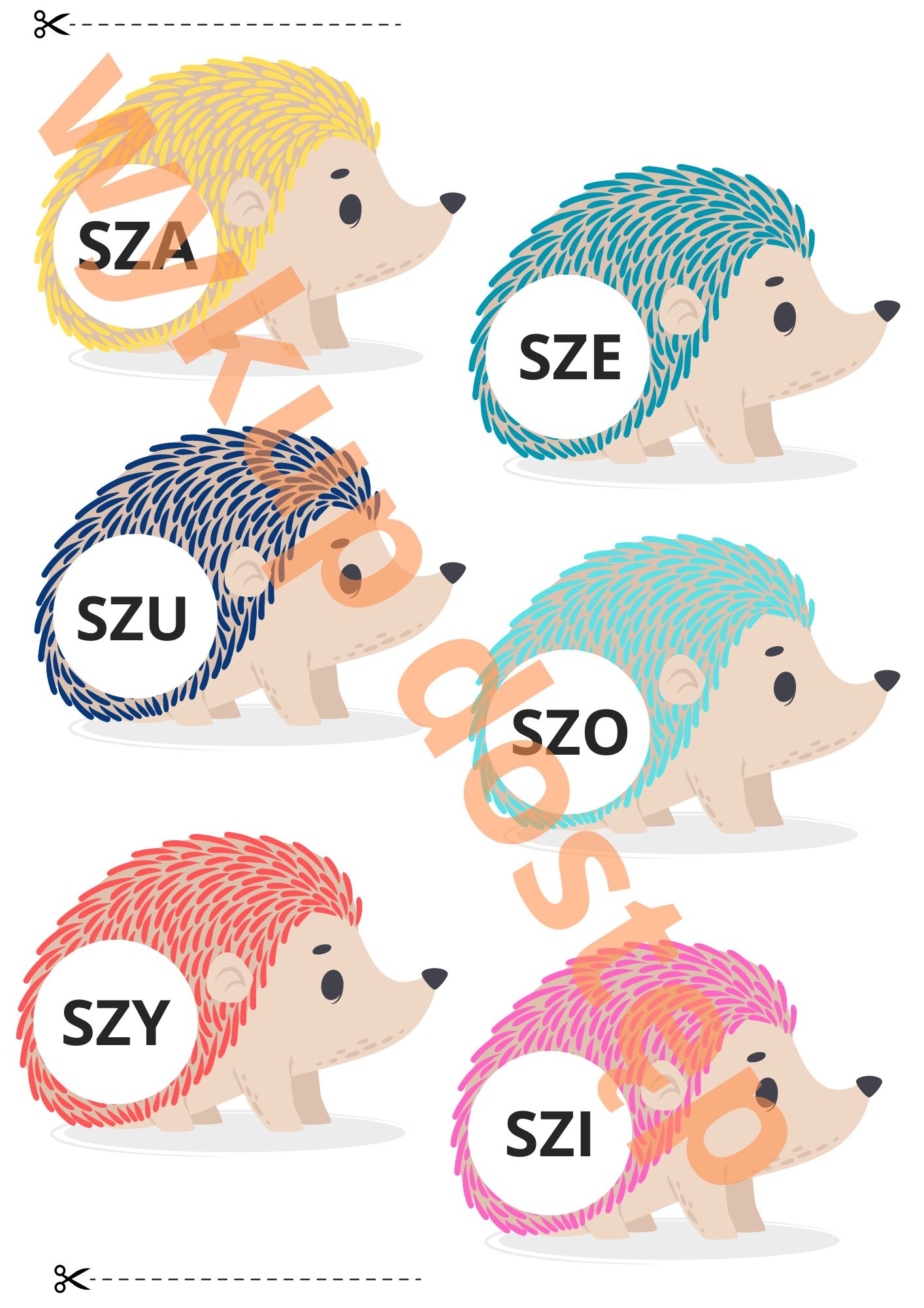 Zestaw zawiera 4 karty z kolorowymi jeżami, które należy wciąć. Dwie karty mają puste miejsca do samodzielnego wpisania/ uzupełnienia innych głosek/ sylab w zależności od potrzeb. Można je wydrukować w takiej ilości, jak tylko chcemy.