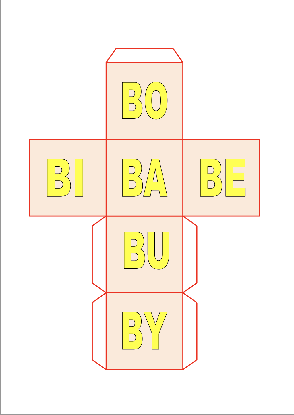 Materiał w formacie PDF zawiera szablony kostek w formacie A4 przeznaczone do samodzielnego wydrukowania, wycięcia i złożenia. Umieszczone na ściankach kostek sylaby stanowią pomoc dydaktyczną wspierającą naukę i utrwalanie czytania metodą sylabową. Mogą być również wykorzystywane do ćwiczeń artykulacyjnych, w szczególności do utrwalania głosek w nagłosie sylaby. Materiał został opracowany z myślą o pracy indywidualnej oraz zajęciach grupowych.