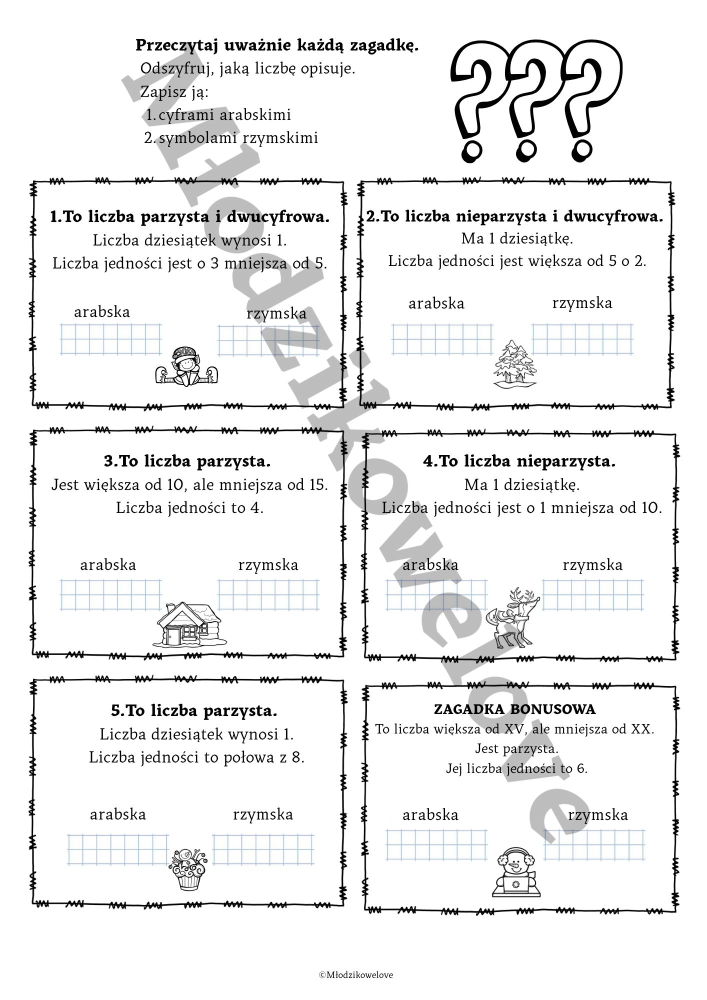 Zestaw kreatywnych kart pracy do nauki i utrwalania symboli rzymskich (I–XX), przygotowany z myślą o uczniach edukacji wczesnoszkolnej (klasy 2–3). Materiał łączy czytanie, logiczne myślenie, elementy grywalizacji oraz pracę indywidualną i w parach.