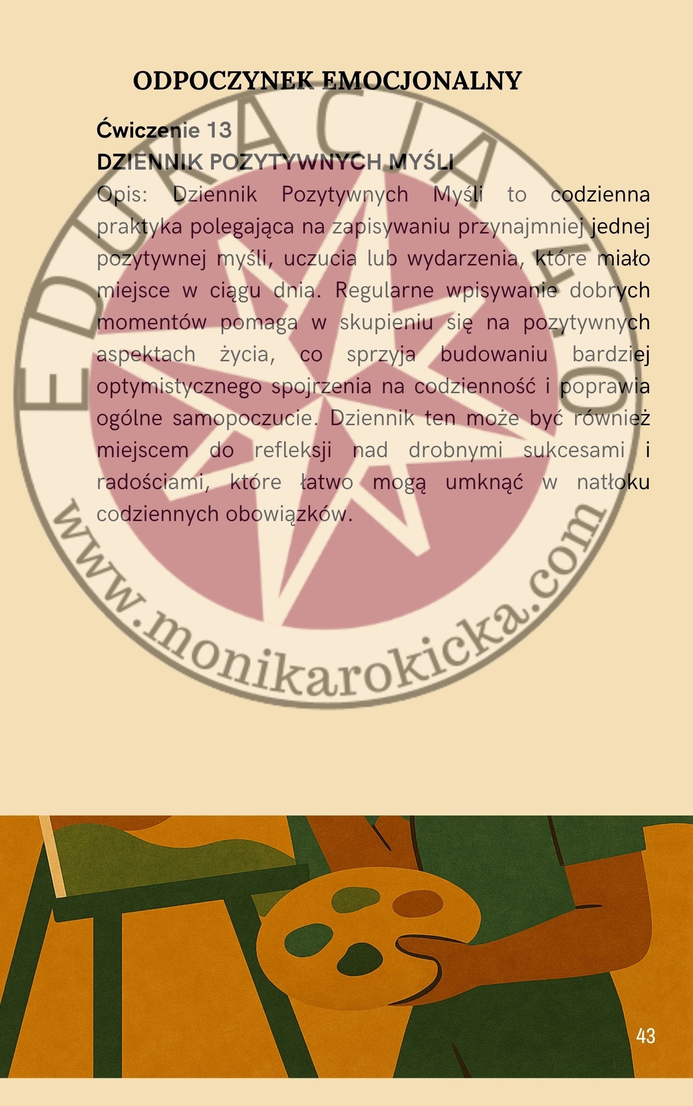 "Sztuka odpoczynku" to praktyczny i inspirujący przewodnik stworzony specjalnie z myślą o nauczycielach, którzy chcą zadbać o swoje zdrowie psychiczne, odzyskać energię i na nowo poczuć radość z pracy i życia.