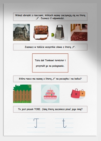 Zadania pisemne, które pomogą dziecku opanować poprawną pisownię wyrazów zaczynających się na literę „T” 📝.