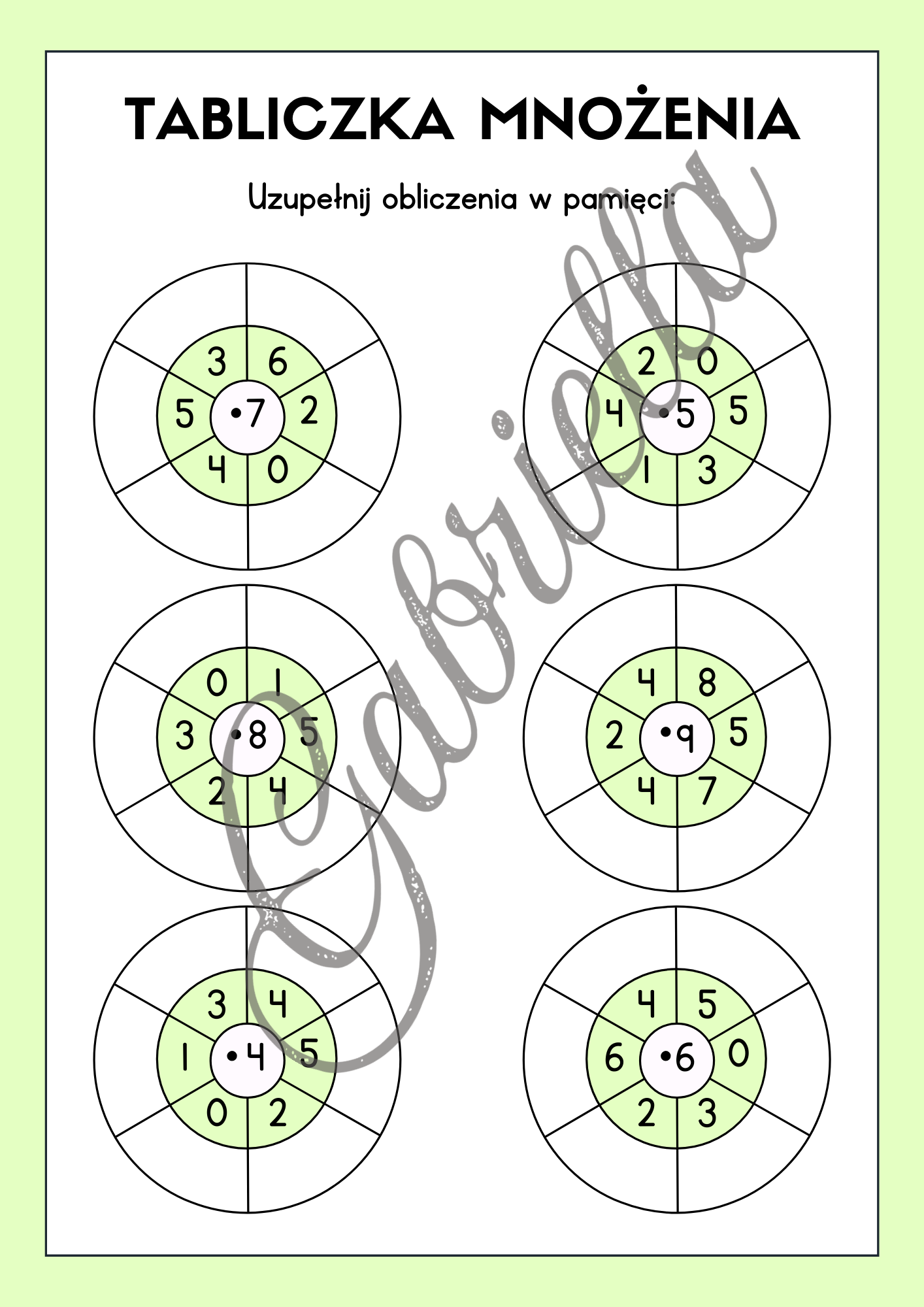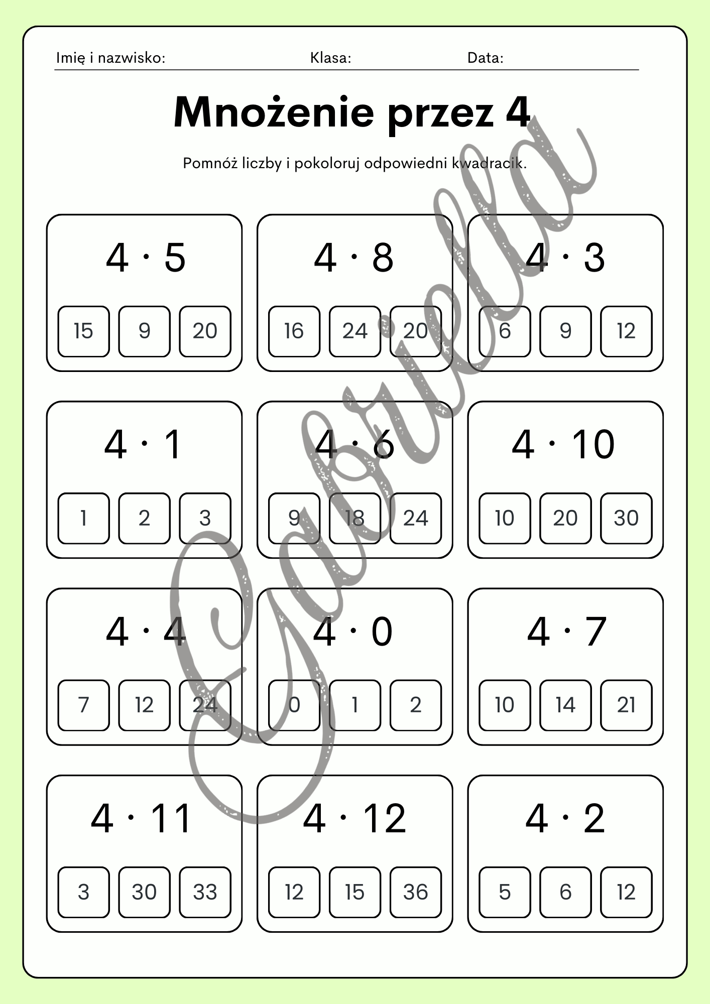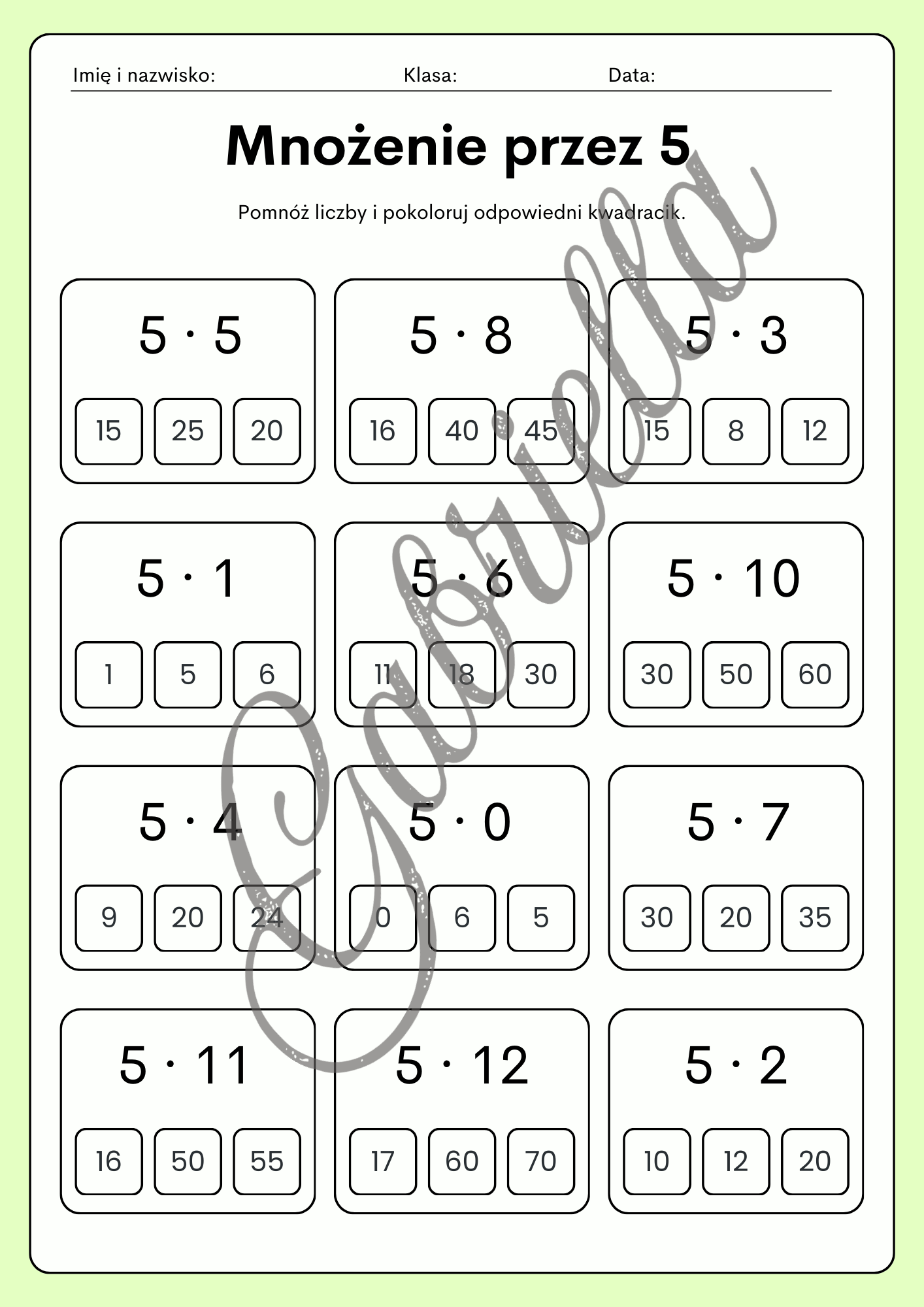 Tabliczka mnożenia - kolorowa karty pracy, mnożenie przez 2,3,4 oraz 5.