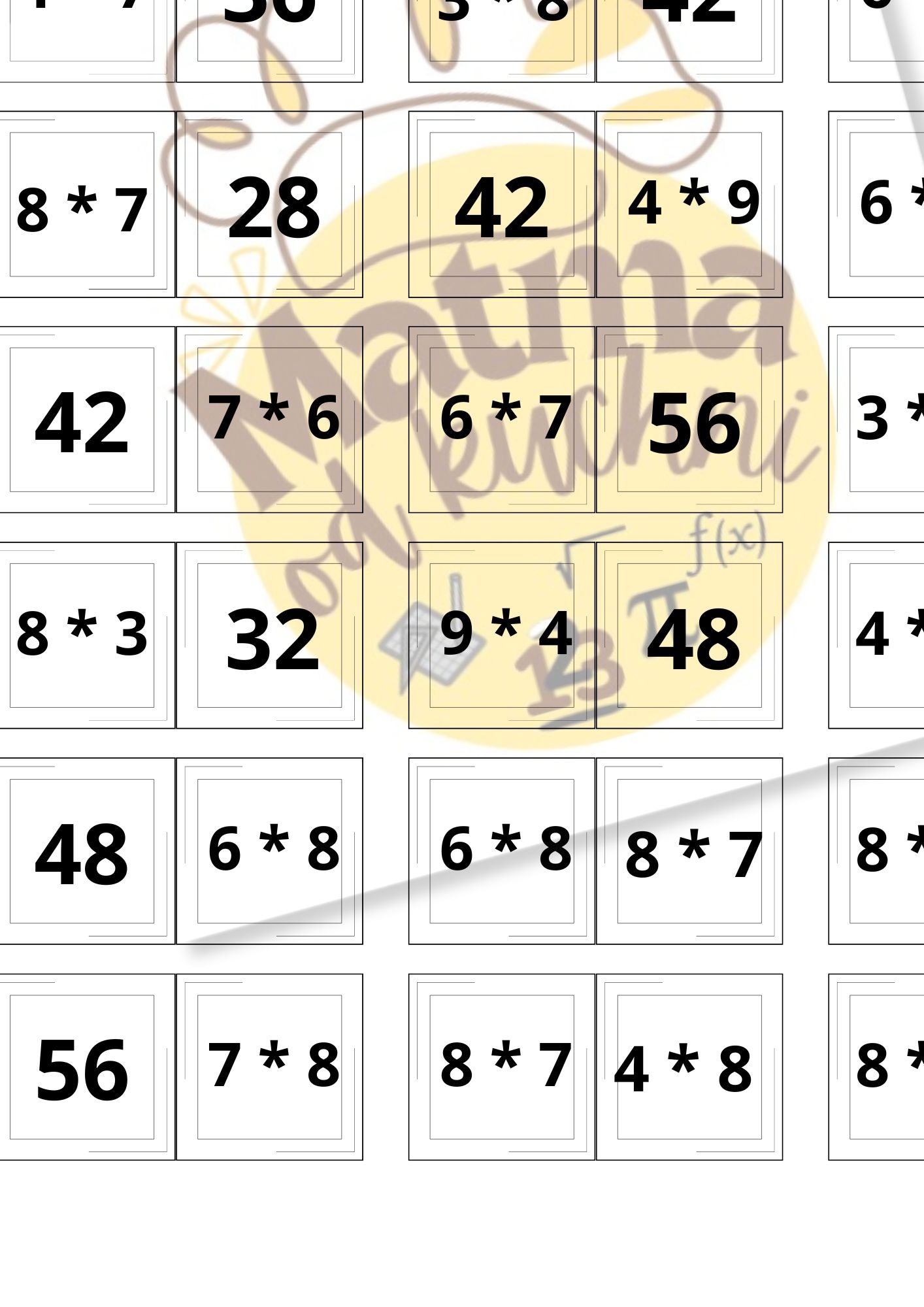 wersja 1 - tabliczka mnożenia do 50;