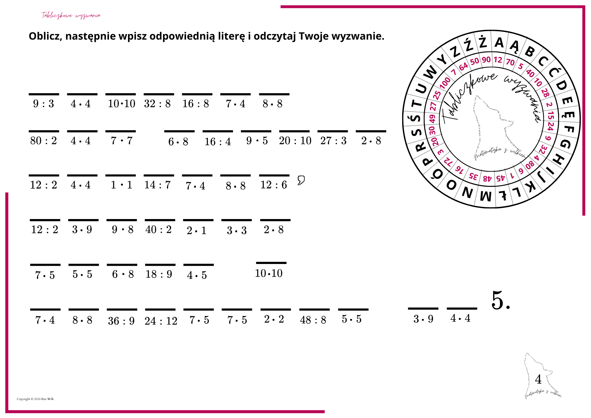 Tabliczkowe wyzwania to wyzwania do wykonania, które najpierw należy rozszyfrować, obliczając działania z tabliczki mnożenia i dzielenia.