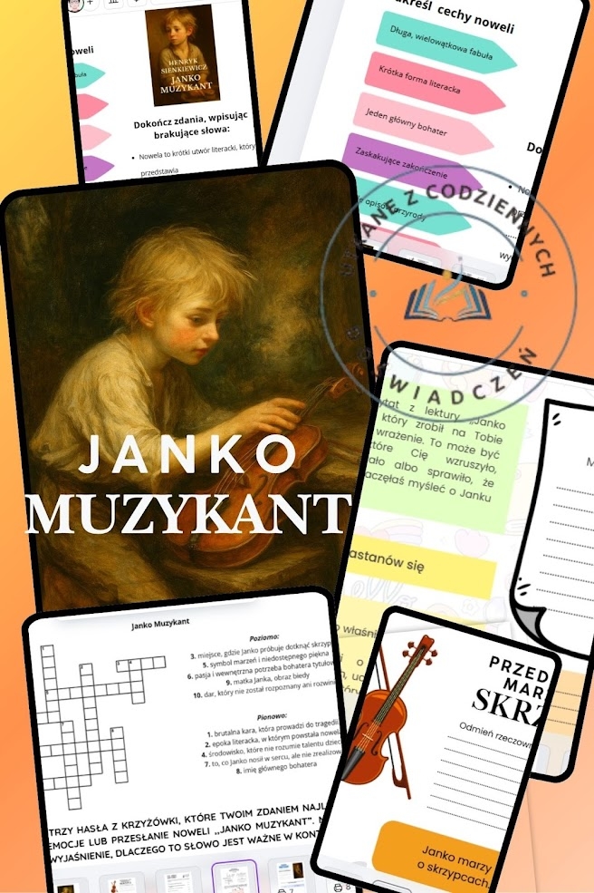 Czy można połączyć klasykę literatury z nowoczesną, angażującą metodą pracy? Zdecydowanie tak. „Janko Muzykant” Henryka Sienkiewicza to nowela, która – choć krótka – porusza do głębi. Warto dać uczniom przestrzeń, by odkrywali ją samodzielnie, we własnym tempie i z różnych perspektyw. Idealnym narzędziem do tego są stacje zadaniowe lub samodzielne karty pracy, które można wykorzystać zarówno w klasie, jak i w pracy indywidualnej.