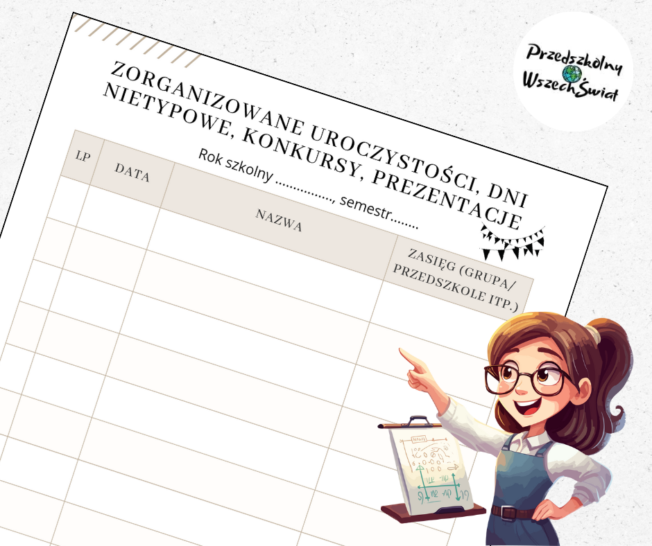 - zorganizowane uroczystości, dni nietypowe, konkursy, prezentacje