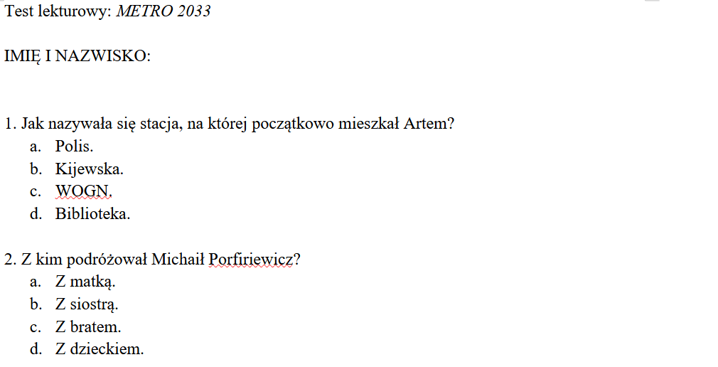Test zawiera 20 pytań zamkniętych jednokrotnego wyboru w edytowalnym formacie oraz odpowiedzi.