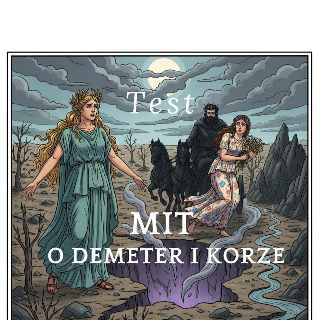 Szukasz kompleksowego narzędzia, które rzetelnie sprawdzi wiedzę Twoich uczniów z jednej z najważniejszych lektur z zakresu mitologii? Prezentujemy gotowy arkusz egzaminacyjny, który łączy w sobie dbałość o detale fabularne z umiejętnością interpretacji symboliki. Co zawiera materiał? * Aż 24 zróżnicowane pytania otwarte, które pozwalają na wieloaspektową ocenę wiedzy ucznia. * Pełny klucz odpowiedzi, ułatwiający szybkie i obiektywne ocenianie prac. Zalety materiału dla nauczyciela: * Wysoki poziom szczegółowości: Pytania obejmują nie tylko główny wątek, ale i istotne detale, takie jak nazwa miasta, do którego przybyła Demeter (Eleusis), czy konkretny środek transportu Hadesa (złoty rydwan). * Weryfikacja rozumienia symboli: Test sprawdza, czy uczniowie potrafią wyjaśnić przyczynę zmian pór roku oraz konsekwencje zjedzenia ziaren granatu. * Analiza relacji i motywacji postaci: Arkusz bada znajomość powiązań między bogami Olimpu oraz emocje towarzyszące bohaterom, takie jak rozpacz Demeter po stracie córki. * Gotowy do druku: Przejrzysta struktura z miejscem na wpisanie odpowiedzi pozwala na natychmiastowe wykorzystanie materiału podczas lekcji lub jako pracy domowej. Zapewnij swoim uczniom rzetelną powtórkę i miej pewność, że żaden istotny element mitu o Demeter i Korze nie został pominięty!