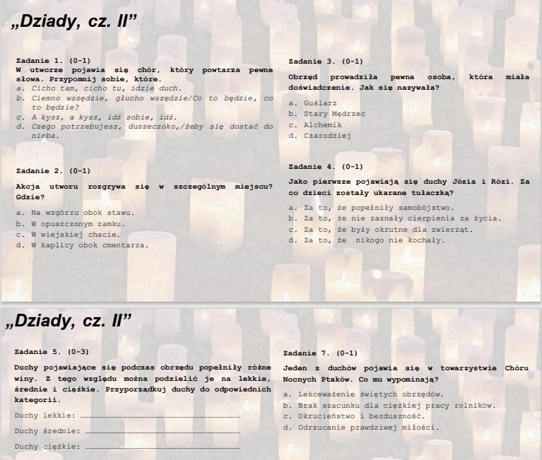 Test wprowadzający z treści lektury "Dziady, cz. II"
