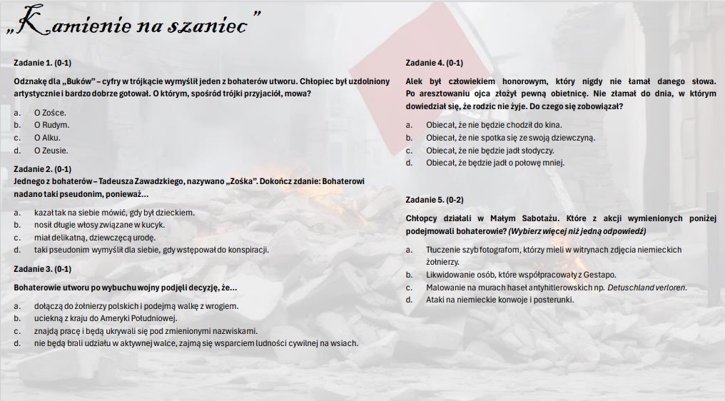 Test wprowadzający z treści lektury "Kamienie na szaniec"