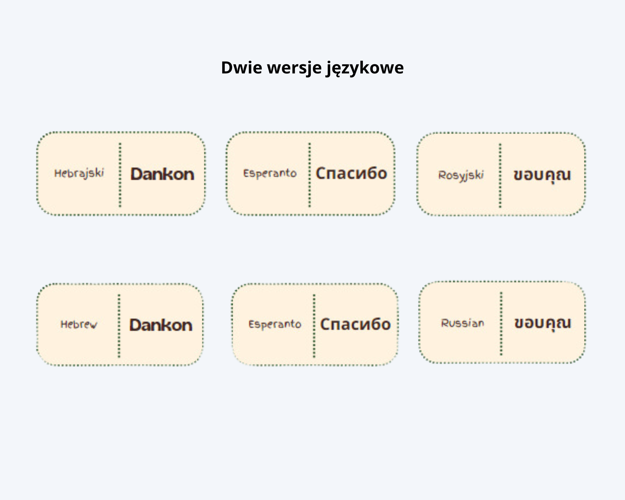 Dodatkowo w zestawie znajdują listy z wyrażeniami w dwóch językach