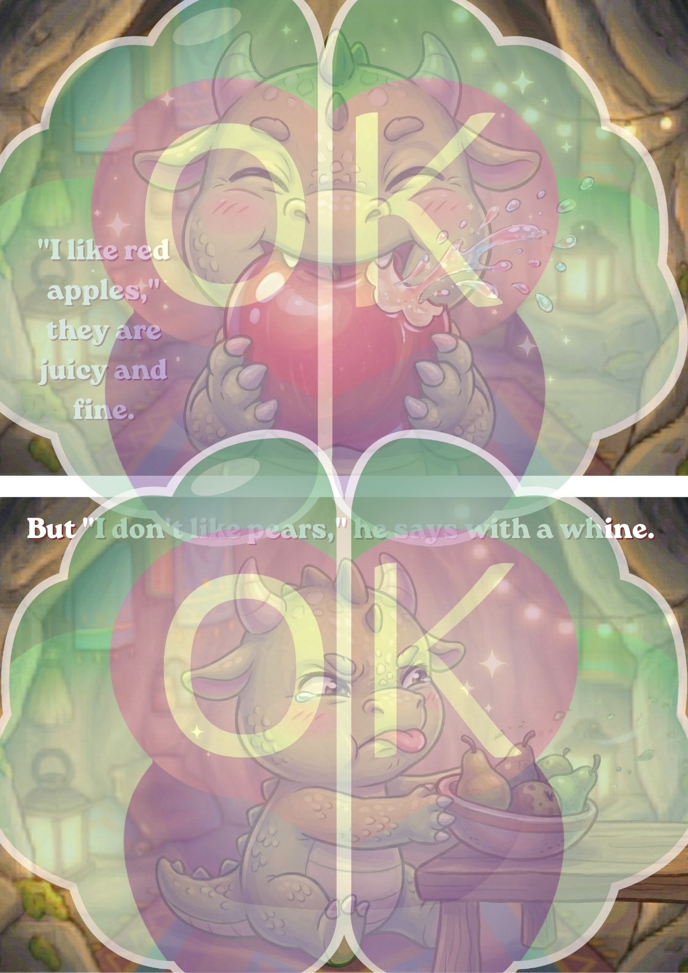 Owocowy wierszyk: Rytmiczny tekst o smoku, który zajada się jabłkami.