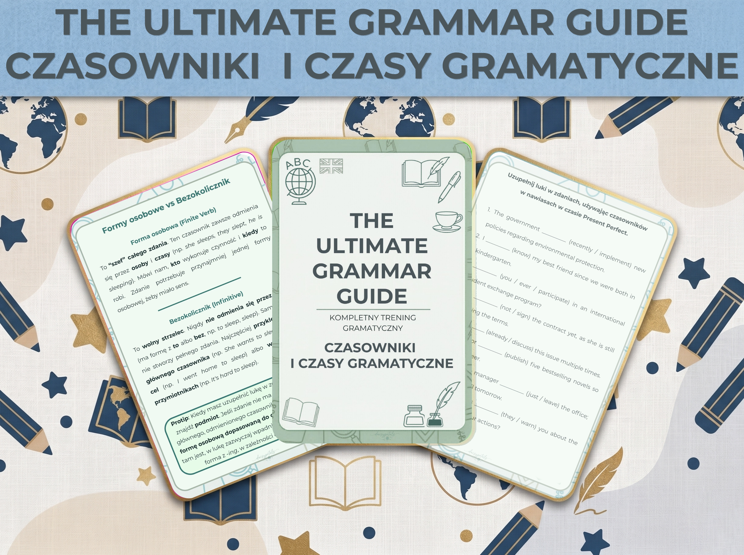 "The Ultimate Grammar Guide: Czasowniki i Czasy Gramatyczne" to potężny e-book stworzony z myślą o uczniach przygotowujących się do matury rozszerzonej z języka angielskiego (poziom B2/C1) oraz nauczycielach szukających gotowych, estetycznych i konkretnych materiałów na swoje zajęcia.