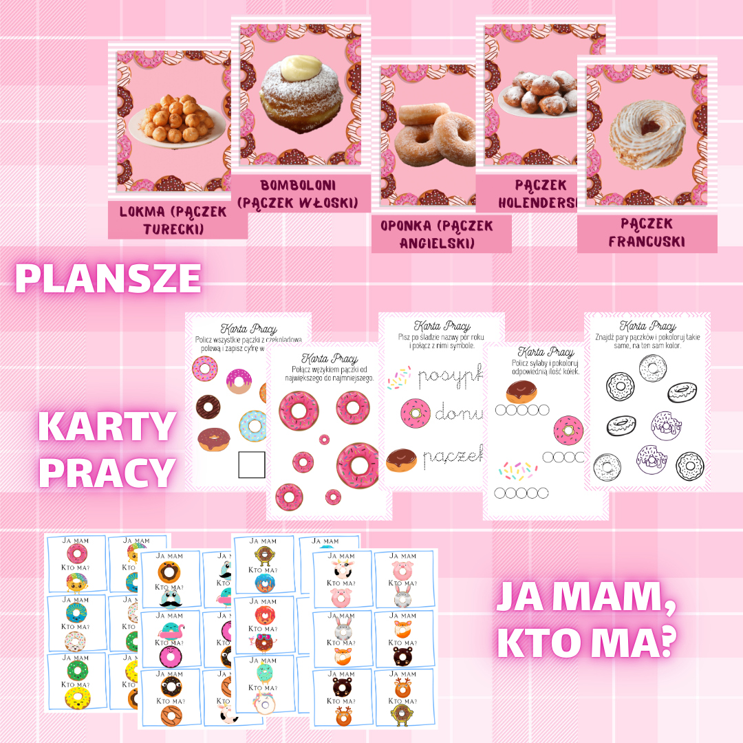 Zestaw zawiera SCENARIUSZ ZAJĘĆ na Tłusty Czwartek wraz z wszystkimi pomocami: