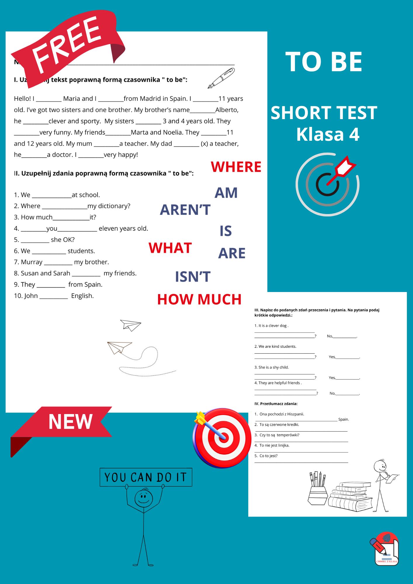 Krótkie podsumowanie pracy z czasownikiem "to be" dla klasy 4