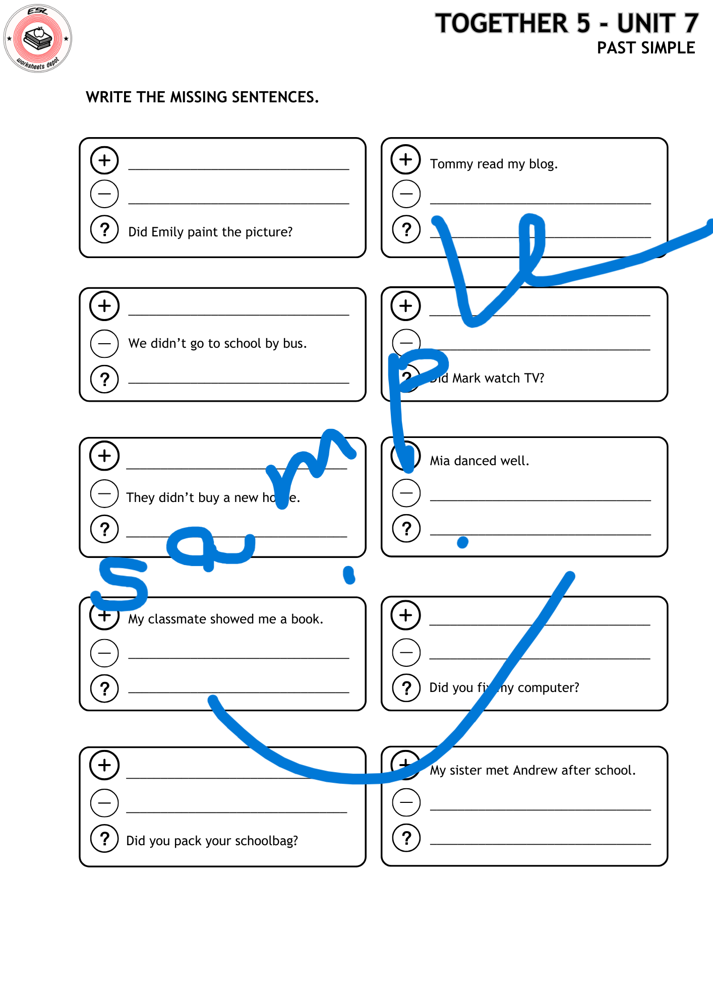 10 zadań utrwalających czas past simple.