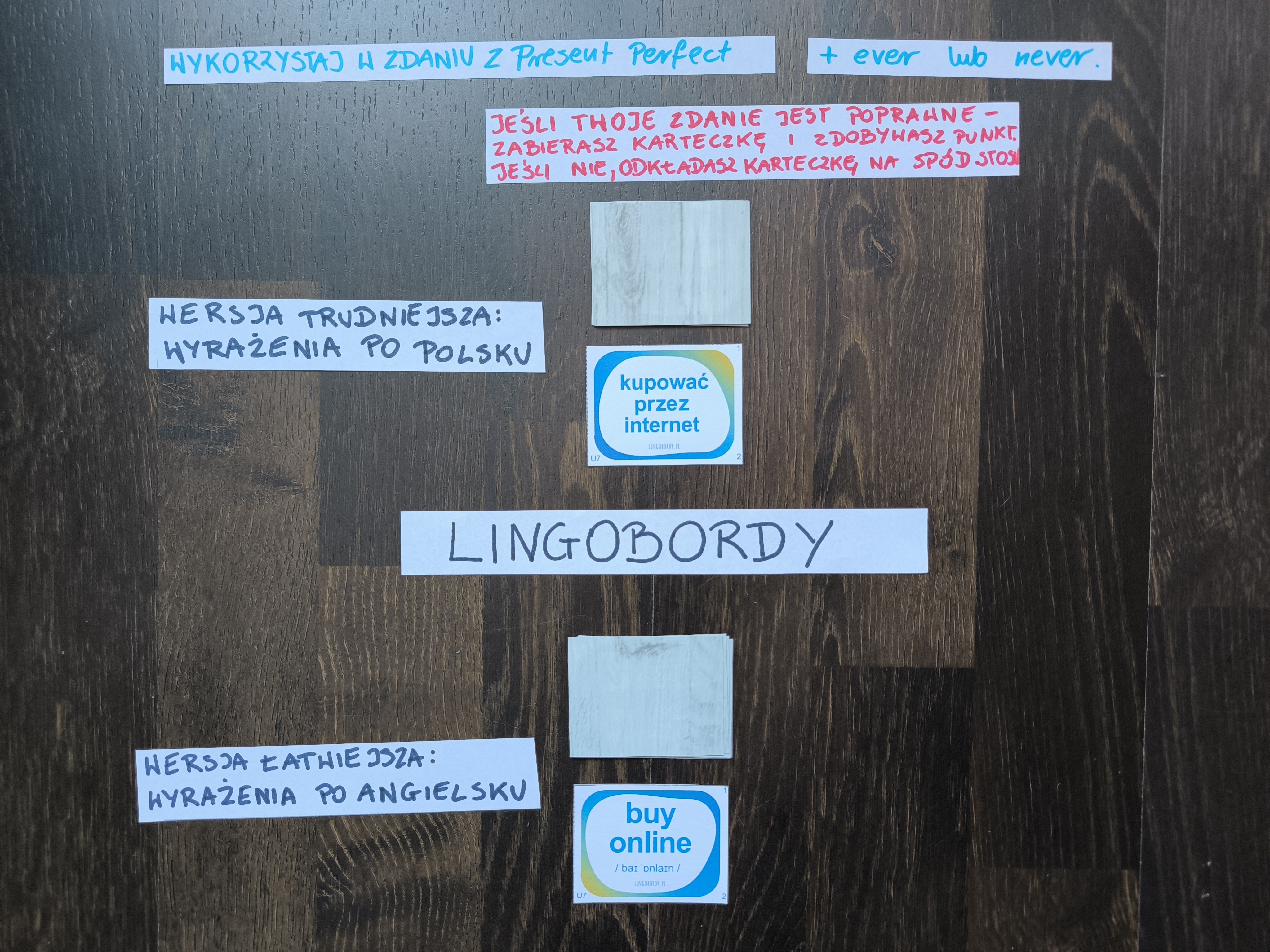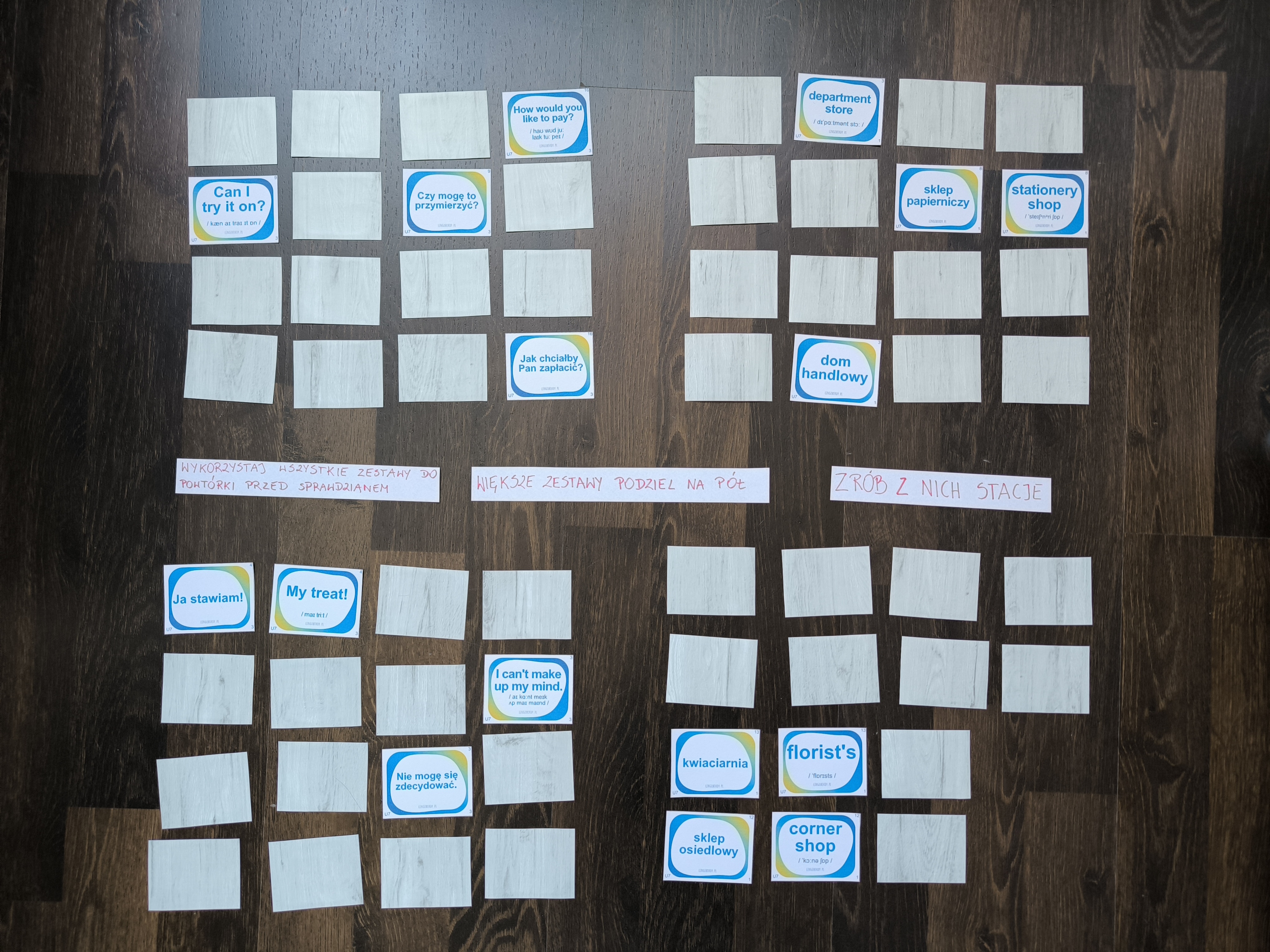 - Pełna elastyczność: Dołączam puste szablony kart – możesz dopisać własne słówka lub zwroty, których Twoja grupa potrzebuje najbardziej.