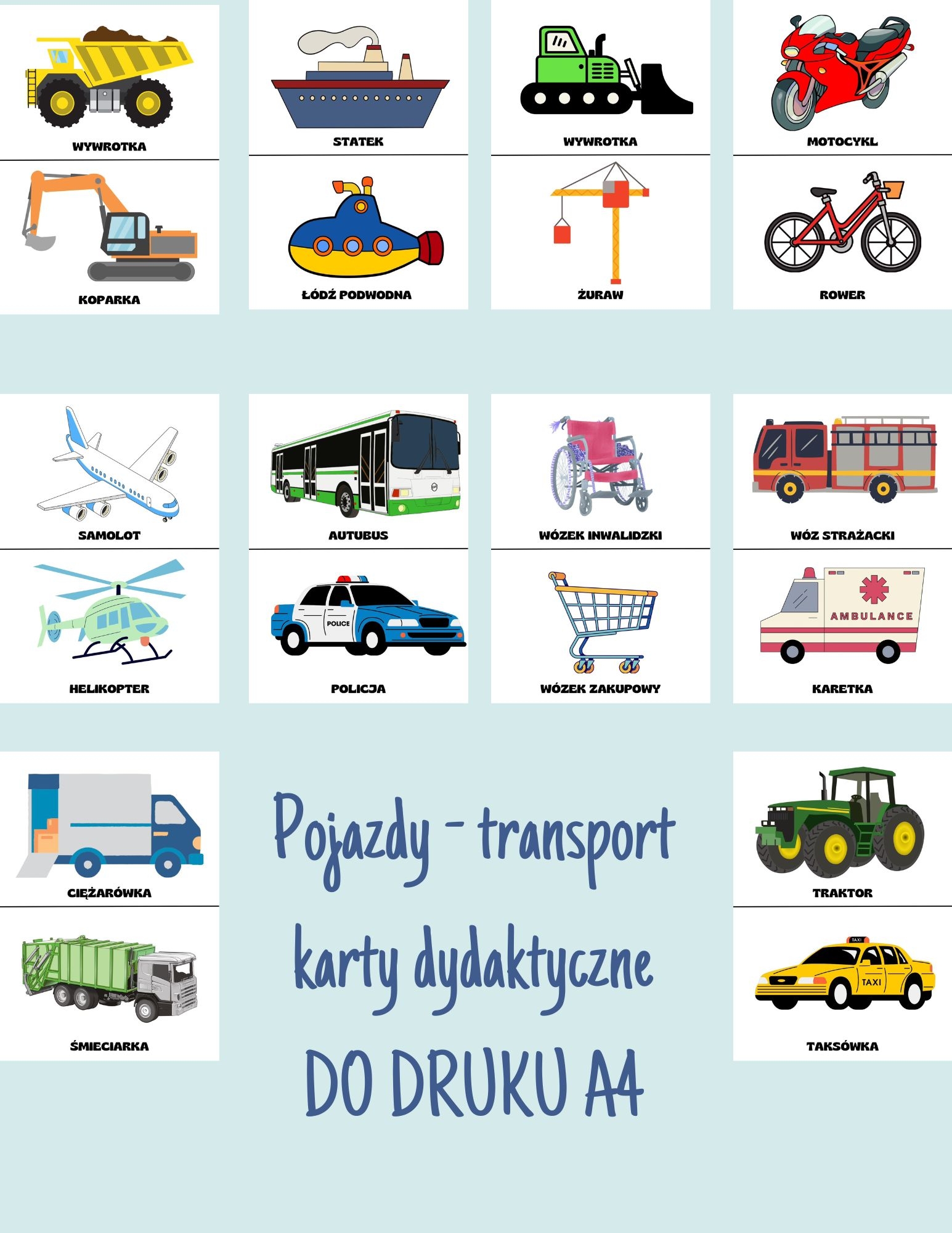 TRANSPORT- POJAZDY karty dydaktyczne