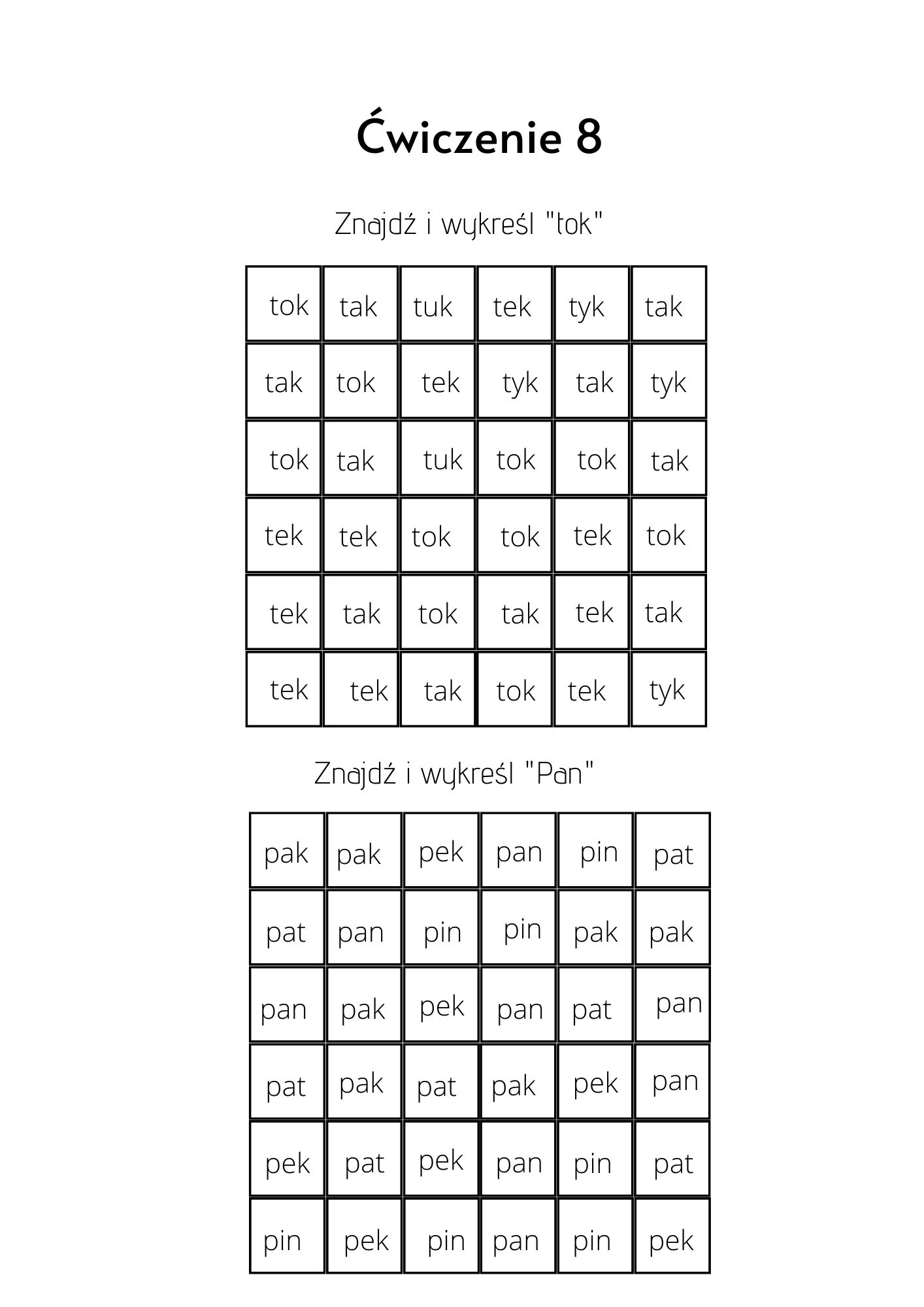 - ćwiczenia koncentracji uwagi i spostrzegawczości