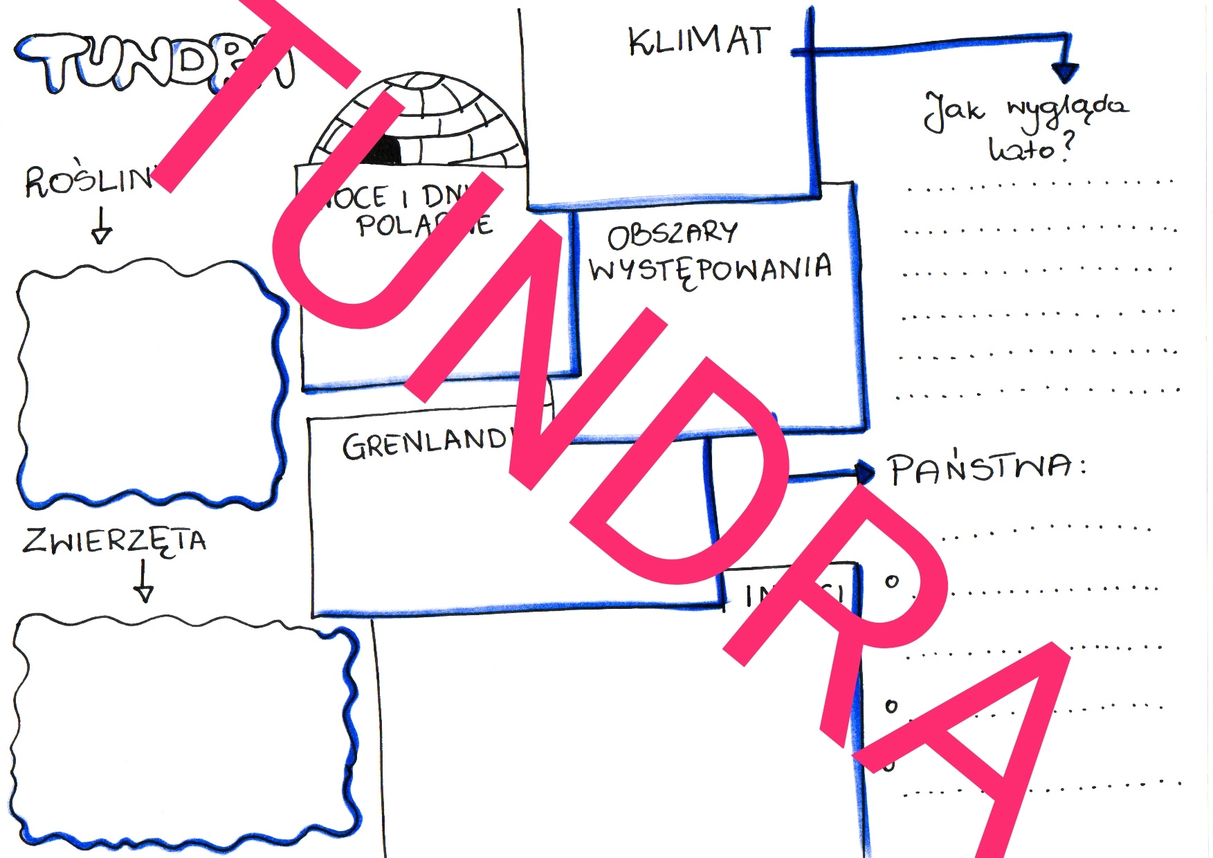 Obszar występowania, klimat, rośliny i inne cechy charakterystyczne tundry - karta pracy do wypełnienia przez ucznia klasy piątej.