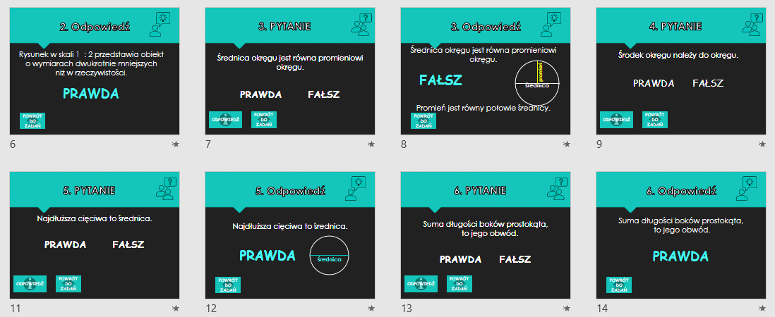 Turniej GEOMETRIA dla uczniów klasy 4 może być z powodzeniem wykorzystany w klasie 5. Sprawdza się przy powtórzeniach materiału, jako urozmaicenie leckji.