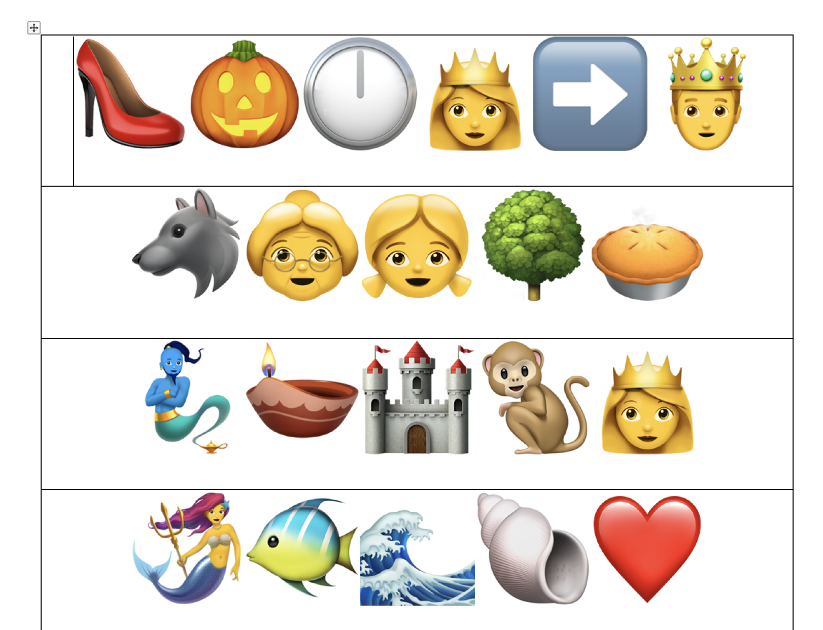 Każda karta zawiera zestaw emoji, które w sprytny sposób ukrywają tytuł znanej bajki – Twoim zadaniem jest rozszyfrować, o jaką historię chodzi!