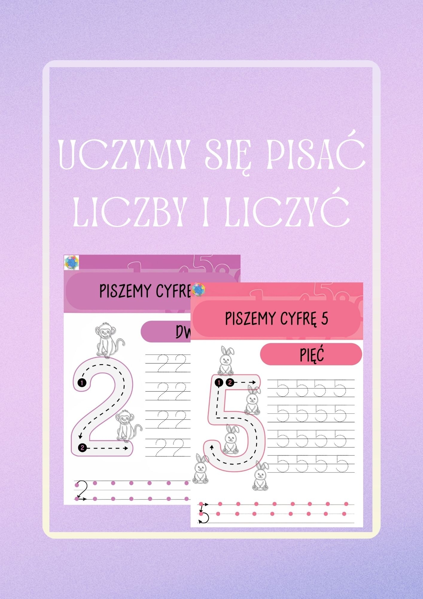 Ten pakiet matematycznych zadań dla małych dzieci pozwoli maluchowi opanować umiejętność pisania cyfr od 0 do 9. Każde zadanie ma odpowiednią ilość obrazków, co pomaga dziecku w nauce liczenia. Pełne zaangażowanie pamięci wzrokowej, motoryki małej i umiejętności nazywania liczb w kolejności podczas liczenia pozwolą dziecku skutecznie zapamiętać materiał. W każdej aktywności dziecko musi najpierw analizować dużą liczbę oraz określoną sekwencję ruchów podczas zapisywania, następnie zapisuje liczbę wzdłuż linii przerywanych i wykonuje zadanie samodzielnie.