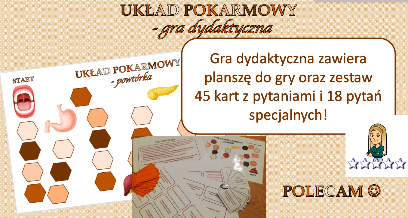 Gra planszowo-karciana idealnie sprawdzi się do powtórzenia materiału o układzie pokarmowym!