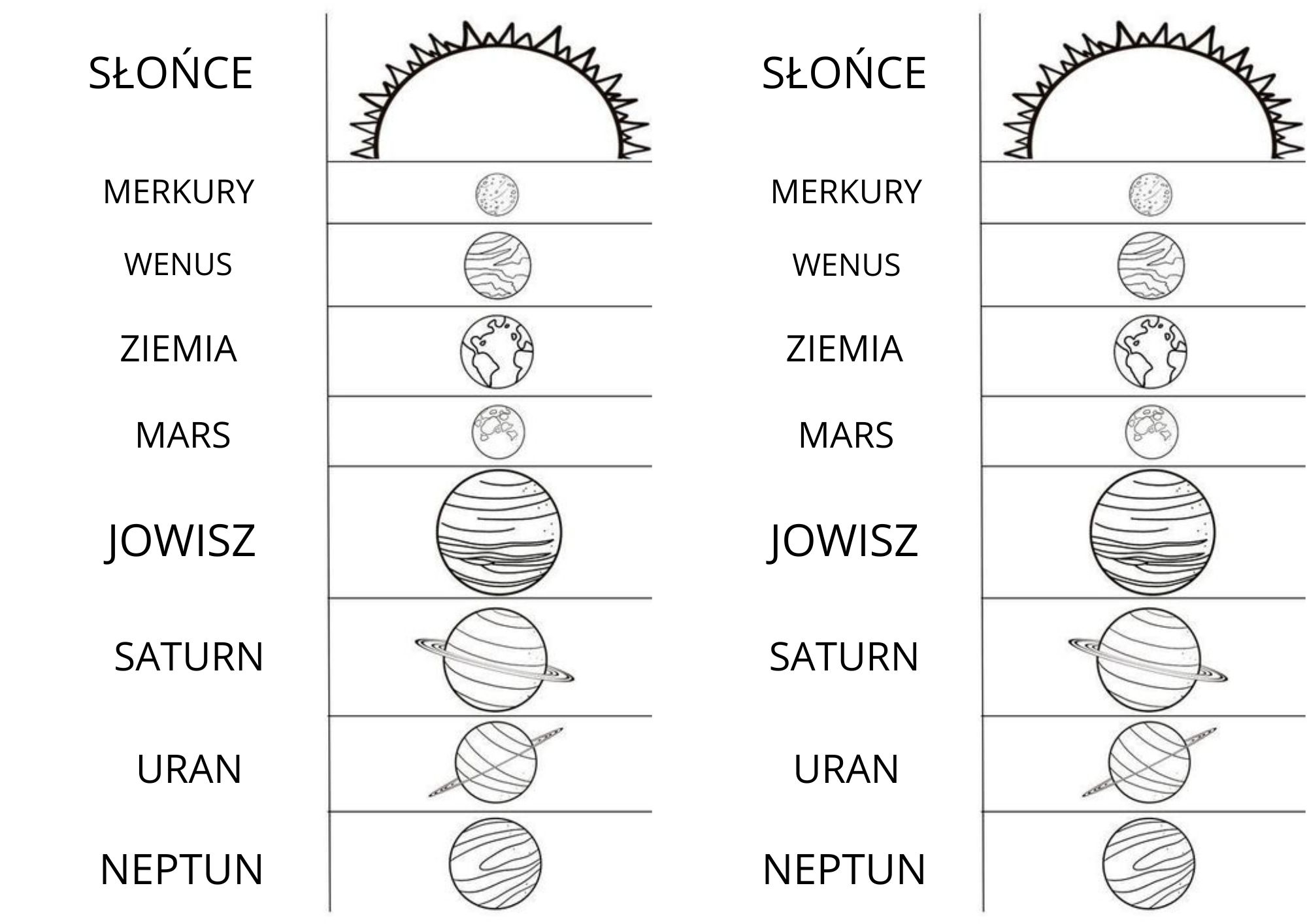 Materiał przydatny w klasach 6. Planety można wkleić do zeszytu i pokolorować . Następnie rozcinamy planety i pod spodem zapisujemy informacje o nich.