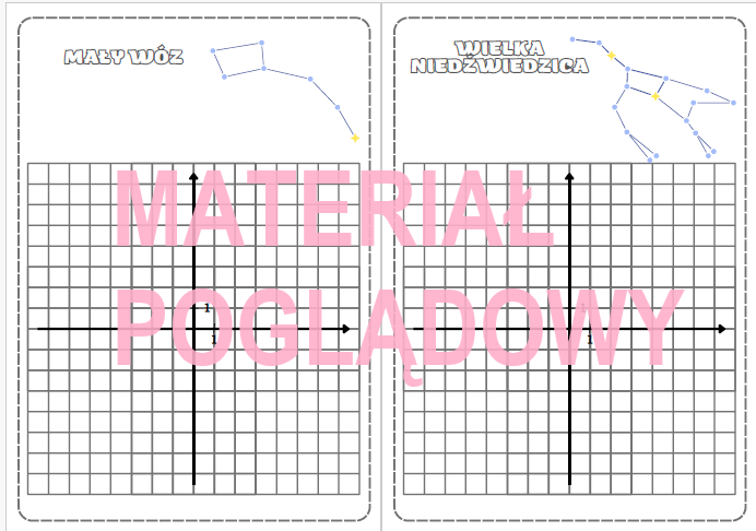 Plik zawiera 12 kart pracy wymagających zaznaczenia punktów oraz połączenia według wzoru aby otrzymać konstelację odpowiadającą znakom zodiaku oraz 6 kart pracy do samodzielnego projektu innych gwiazdozbiorów.