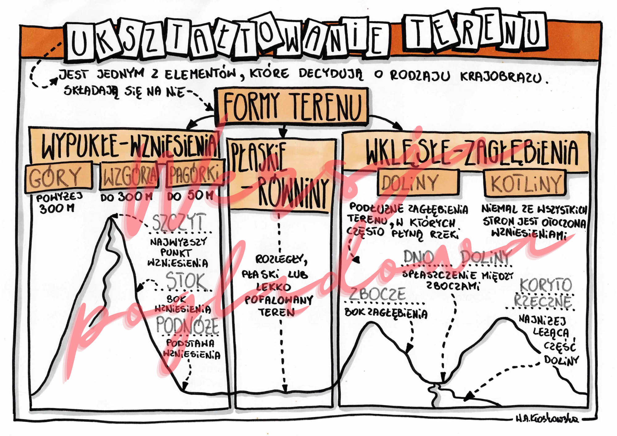 Ukształtowanie terenu – przyroda kl. 4 - wypełniona karta pracy