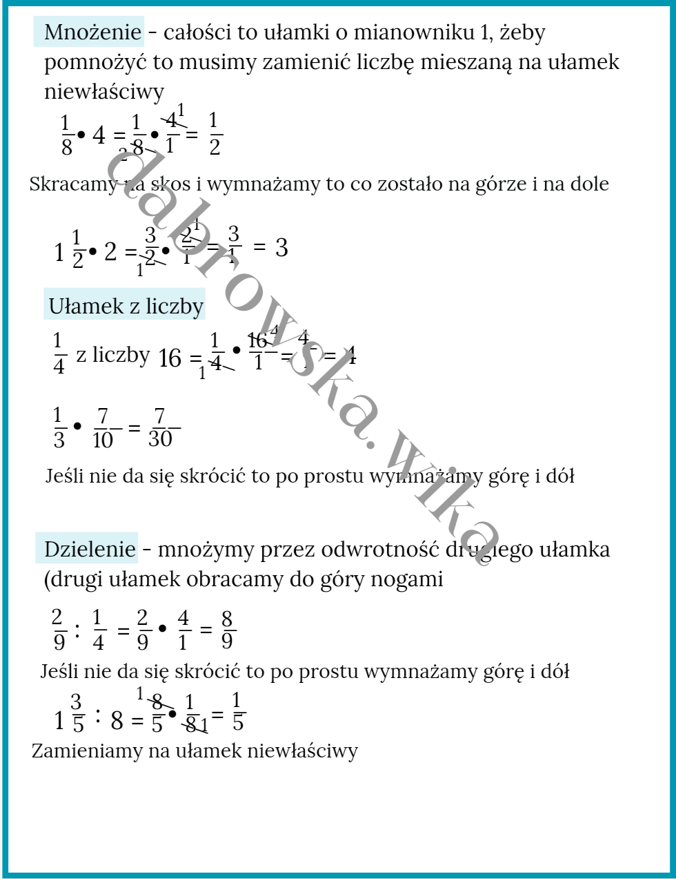 - mnożenie ułamków zwykłych wraz z przykładami.