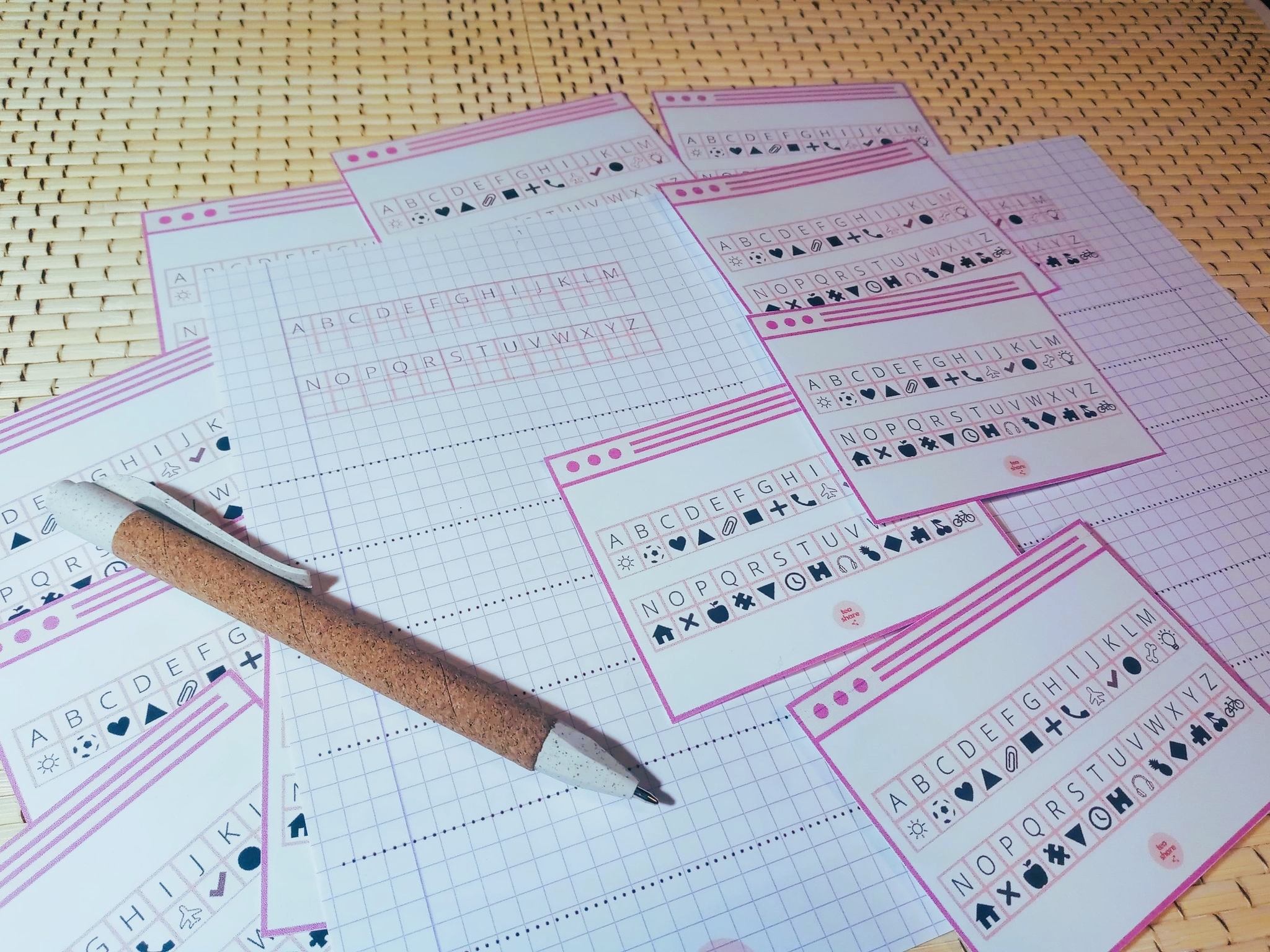 Przygotowałyśmy dla Was gotowy szyfr (jest również wersja do samodzielnego wypełnienia). Zadaniem naszych uczniów będzie zaszyfrowanie słówek albo pytań z daną konstrukcją gramatyczną (np. Do you like ice cream?).