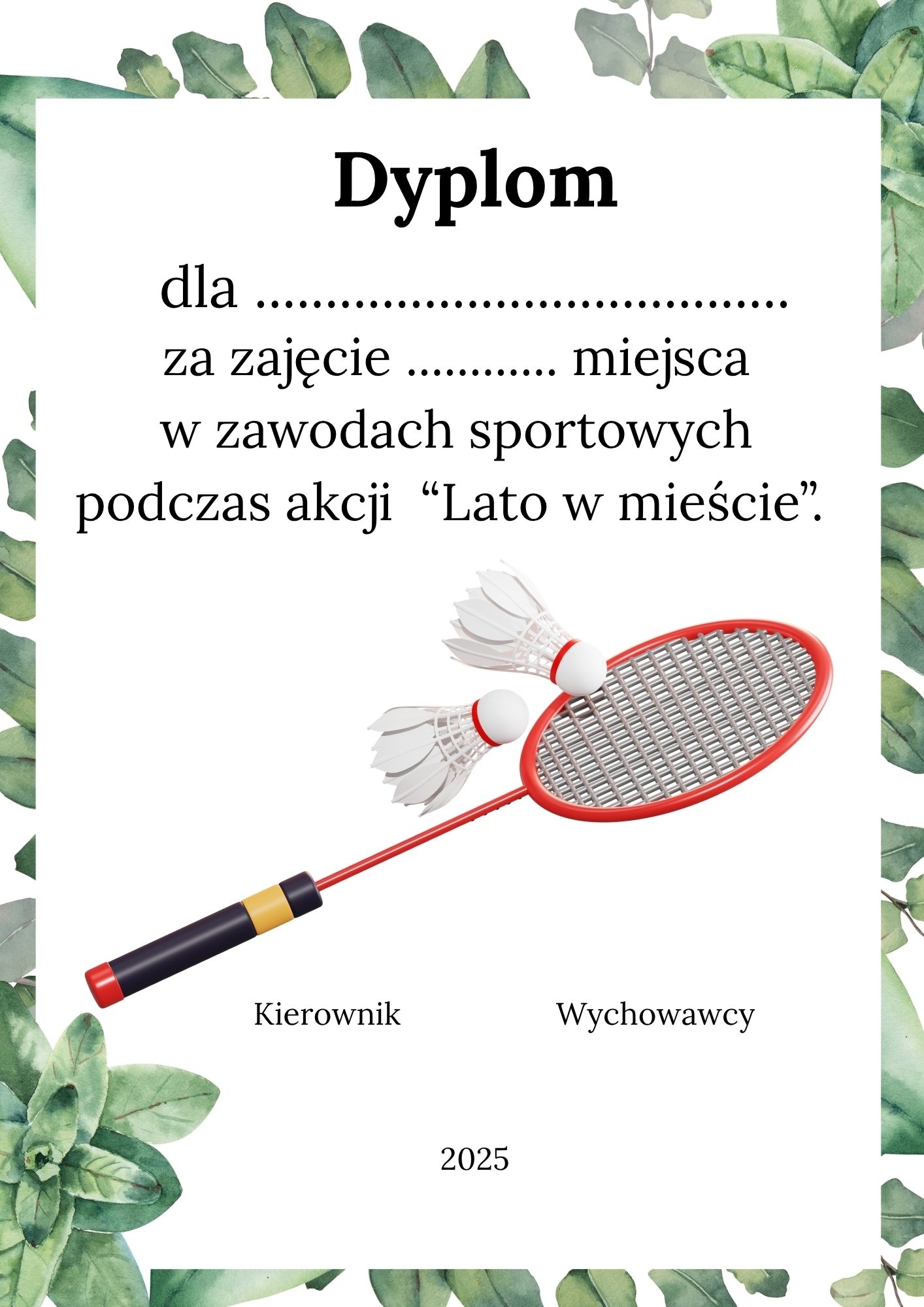 Dodatkowo otrzymasz trzy wzory przykładowych dyplomów na pamiątkę pobytu na akcji “Lato w mieście” / Letnich koloniach.