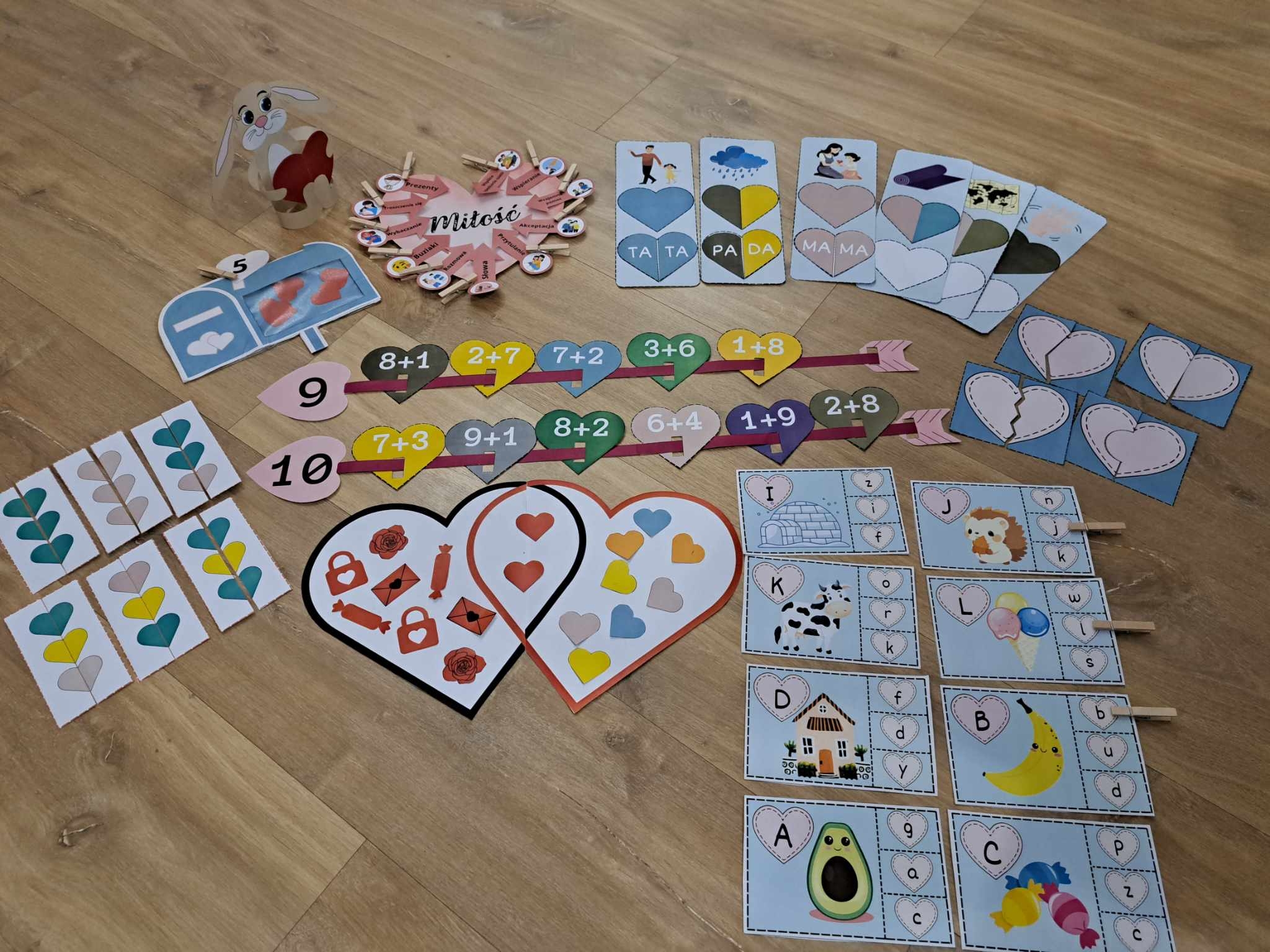 - dopasowywanie rozciętych serduszek - 8 serduszek (16 elementów)